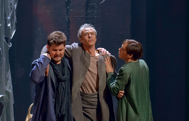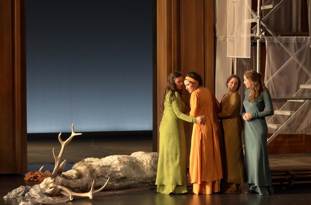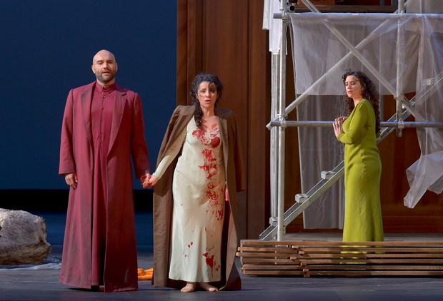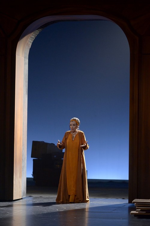 © Pascal Gely La mise en scène de Clément Hervieu-Léger, pensionnaire de la Comédie Française, est convaincante, classicisante, sans ornements superflus. Certes, les costumes de Caroline de Vivaise - malgré de très beaux jeux de couleurs passant de la grisaille guerrière aux tons éclatants de la cour - manquent d’opulence dans leur épure modernisée. Certes, l’immonde échafaudage des deux derniers actes, qui sert notamment à séparer le monde des hommes de celui des dieux, est une concession facile à la laideur minimaliste actuelle. Mais le metteur en scène séduit par le caractère théâtral et poétique de l’ensemble, et par les jeux de lumières subtils de Bertrand Couderc.
