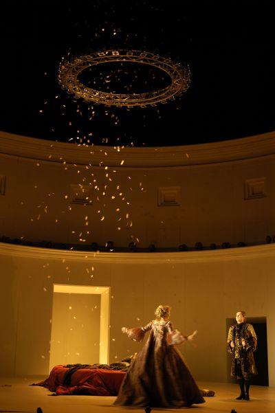 Reprise de la production de 2004 alors dirigée par Marc Minkowski, cette Sémélé affiche clairement le caractère opératique de l'œuvre, "opéra profane" dont Haendel, délaissant en fin de carrière l'opera seria italien, commença la composition en juin 1743, sur un sujet fameux tiré des Métamorphose d'Ovide adapté par Newburg Hamilton à partir de celui d'un masque de William Congreve. On notera avec intérêt que David McVicar a réintroduit le personnage de Cupidon, supprimé par le compositeur avant la création, n'hésitant pas à lui confier l'air phare "Endless Pleasure" qu'on aurait toutefois aimé entendre interprété par la Semele Danielle De Niese. Quoiqu'il en soit, la mise en scène de McVicar s'avère élégante et évocatrice, alliant avec naturel les habits de soirée d'un grand salon ovale immaculé, et les beaux costumes XVIIIème couleur crème du premier acte pour sombrer petit à petit dans une surenchère de robes à panier argentées, de paillettes et de strass sur fon violet d'un kitch assumé et excentrique où l'Olympe et la jet set se rejoignent dans leurs mœurs décadentes. Le jeu des chanteurs, théâtral et dynamique, ne perturbe jamais le flot musical, et le duo Jupiter / Sémélé parvient dans ses moments d'intimité à une vérité amoureuse pudique et touchante. On louera en particulier les talents de Danielle De Niese, parfaite en une Sémélé vaniteuse et enfantine, de Claire Debono (accoutré d'un costume à rayures et de lunettes de soleil à faire pâlir n'importe quelle star de rock) et le Somnus endormi et truculent de Peter Rose.