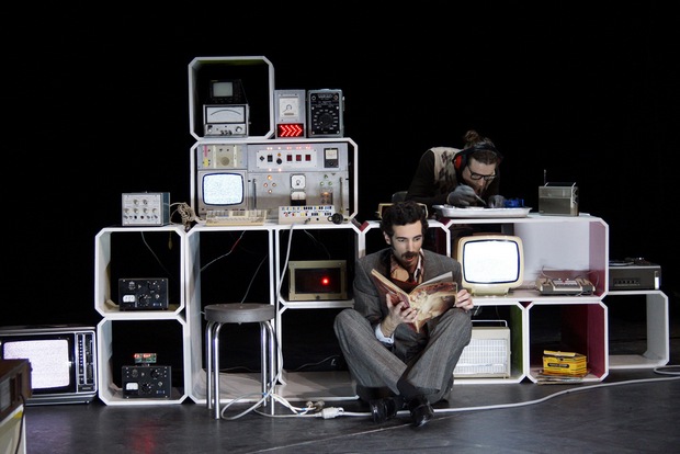 © Accent Tonique Dans un coin de la scène trône un pianoforte, instrument qui nous régalera tout au long du spectacle de ses sonorités moelleuses, sous les doigts agiles de Camille Delaforge. La mise en scène repose sur des accessoires peu nombreux qui conviennent bien à la taille réduite de la salle. Quelques consoles d'écran évoquant les années des premiers pas sur la Lune, quelques appareils électroniques sortis tout droit de la même époque, une fausse lunette astronomique posée sur un trépied de projecteur suffisent à suggérer l'ambiance. Nous voici ramenés en un tournemain à la fin des années 60 ! A l'entracte, la diffusion des enregistrements des paroles des astronautes américains lors de cette équipée historique achèvera de nous replonger dans l'ambiance... Sur la scène, le contre-ténor Cécil Gallois incarne un Ecclitico tout affairé à sa machinerie informatique, qui crachote en anglais des instructions à peine compréhensibles...De son timbre diaphane, légèrement acide, il fait miroiter à Buonafede des images érotiques du monde lunaire ! Ce dernier (Guilhem Souyri) possède une voix de baryton aux graves généreux et à la vaillante projection. Il pose avec naturel ce rôle de gogo, un peu fanfaron, séducteur sur le retour, parfait dindon de la farce qui se prépare...Lisetta (Anna Reinhold) nous dévoile son timbre mat de mezzo dans son air "Una donna come me", avant que la première partie ne s'achève sur le beau quatuor "Vado, vado".