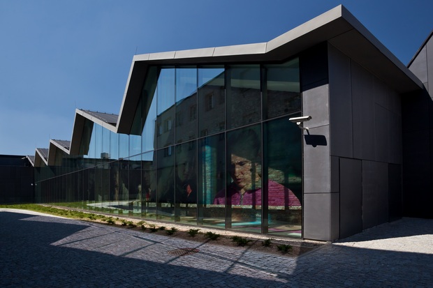 Le Mocak © Misteria Paschalia, 2013 Le visiteur est séduit en découvrant cette ville, véritable joyau blotti dans les méandres de la Vistule et dominé par la colline du Wawel couronnée par l’imposant château royal qui contient une collection exceptionnelle de tapisseries Renaissance et la cathédrale de Cracovie, panthéon des rois et des hommes illustres. L’ensemble architectural gothique et renaissant que présente la partie historique de Cracovie a été épargné par les désastres des guerres alors que le quartier juif de Kazimiertz a été très éprouvé pendant la Seconde Guerre mondiale. Mais l’esprit positif et la vitalité des Cracoviens ont su transformer des bâtiments liés aux temps de malheur en espaces de culture. Ainsi, une partie de l’ancienne usine Schindler a été aménagée pour évoquer l’occupation de Cracovie par les nazis de 1939 à 1945, les persécutions et l’extermination des juifs, bouleversant ! Une autre a été transformée en musée d’art contemporain, le Mocak, qui a été inauguré durant l’été 2011 et représente le plus grand investissement pour l’art en Pologne. Une surface de 10 000m2 a été aménagée par deux architectes italiens, Claudio Nardi et Leonardo Maria Proli qui ont fait un bel usage du verre et de l’acier pour accueillir dans de superbes volumes les œuvres des artistes polonais et internationaux.