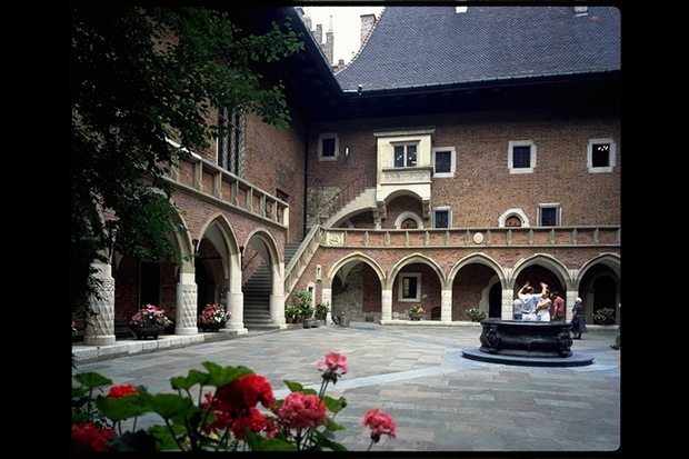 © Misteria Paschalia, 2013 Aujourd’hui, la vie culturelle à Cracovie est foisonnante. Avec le soutien du Ministère de la culture, de la mairie et de son maire, le professeur Jacek Majchrowski, assisté de Magda Sroka pour les affaires culturelles, de Filip Berkowicz, directeur artistique de Misteria Paschalia, le Bureau des Festivals mène une politique active, avec Robert Piaskowski, directeur-adjoint chargé des programmes et coordinateur des projets, pour organiser les festivals de musique ancienne et contemporaine, de théâtre, de cinéma… Autant de témoignages de la vitalité de cette capitale historique, culturelle et universitaire qui a été depuis le Moyen-Age un pôle d’attraction pour les savants et les artistes, une cité ouverte qui a accueilli immigrants et juifs chassés d’autres pays européens. Cracovie moderne allie avec bonheur ce riche héritage venu du passé et un présent avide de créativités en privilégiant tous les domaines liés à la culture. Colloques, rencontres, expositions ponctuent l’année tandis que théâtres, opéra, salle de concert, cinémas accueillent un public nombreux et diversifié. La cité ancienne est entourée d’une ceinture végétale qui remplace les remparts du Moyen Age détruits au XIXème siècle. Il faut franchir cette bande de verdure pour accéder au cœur historique de la cité. Le Rynek, vaste place médiévale du marché bordée de belles maisons Renaissance et palais, est traversé par la Halle aux draps occupée aujourd’hui par des échoppes de souvenirs et d’ambre. La majestueuse église Notre-Dame veille à l’ombre de la place. Outre les somptueux éléments gothiques, les fresques et les vitraux de Jan Matejko (1839-1893), célèbre peintre polonais et de ses élèves, Mehoffer et le merveilleux Wyspianski, elle contient le célèbre retable réalisé au XVème siècle par Veit Stoss, immense polyptique en bois sculpté, peint et doré.
