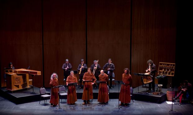 © Patrice Nin Les musiciens ne sont d’ailleurs pas en reste. Les Sacqueboutiers, sous la direction de Jean-Pierre Canihac, qui tient lui-même la partie de cornet à bouquin, enluminent les chants de leurs broderies raffinées et pourtant d’une belle opulence. Le subtil contrepoint avec les voix se nourrit du talent de chacun. On notera la performance de Yasuko Uyama-Bouvard qui joue simultanément et avec panache du clavecin et de l’orgue, une main pour chaque clavier ! Les pièces instrumentales du célèbre éditeur Pierre Attaingnant, dont l’éblouissant "Tourdion", qui illustrent brillamment l’épisode consacré à la danse, sont ainsi admirablement jouées, phrasées avec une science et une musicalité extrêmes. Les applaudissements du public, réfrénés tout au long de ce périple parcouru dans la continuité, ne peuvent néanmoins pas résister à l’effervescence de "La chasse" ou celle de "La guerre". Finalement, ils exigent et obtiennent des interprètes l’exécution d’un bis décalé et particulièrement réjouissant : celle de l’une de ces chansons parisiennes de la fin du 19ème siècle, clamée et jouée avec toute la gouaille qu’elle suggère. Un vrai bonheur que tous les discophiles pourront bientôt apprécier, puisque ce programme vient d’être enregistré par les mêmes ensembles et devrait être disponible dans les prochaines semaines !