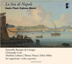 Dès les premières mesures du Notturno pour 2 lyres organisées de Haydn, qui ouvre cet ensemble, le ton est donné : nous sommes dans la joyeuse Italie, celle du Sud, celle où les villes et villages se réveillent le soir et où les ruelles résonnent de voix et de musique, où le peuple oublie la touffeur lancinante de la journée en renouant avec une sociabilité bruyante et chantante. Le roi de Naples Ferdinand IV (1751-1825) se prit d’intérêt pour cet instrument hybride combinant une vielle à roue et un orgue de petite taille, peut-être à cause de son attachement au petit peuple napolitain qui, malgré maintes tribulations et l’arrivée des Bonaparte sur le trône des Deux-Siciles, lui resta fidèle. C’est pour lui que Haydn composa quelques concertos pour vielles organisées. Or, que dire de cet instrument étrange, dont le son hésite entre l’accordéon de la fin du XIXe, la vielle des paysans du Berry et l’orgue mécanique ? Pas grand-chose, si ce n’est que l’on comprend le peu d’intérêt que lui vouèrent la plupart des grands compositeurs, Haydn et Pleyel mis à part. Pourtant, l’écoute est loin d’être désagréable, et les petits concertos proposés sont tout à fait agréables et plaisants ne parvenant toutefois pas à s'élever au-dessus de la musique de divertissement de la fin du XVIIIe siècle, à l'honnête superficialité. En dépit du matériau qui nous laisse sur notre faim, saluons l’attachement de l’Ensemble Baroque de Limoges à faire découvrir au public la lyre organisée et son (mince) répertoire, et tout particulièrement le travail des trois solistes, Matthias Loibner, Tobie Miller et Thierry Nouat, virtuoses d’un instrument qui n’est quasiment plus enseigné... Pointons également la direction souple, précise de Christophe Coin qui cumule avec une aisance manifeste les talents de violoncelliste, gambiste et chef d’orchestre.Les attaques nettes et lumineuses des deux Nocturnes et du Concerto écrit par Haydn rendent sensible la patte du maître : vivacité, profondeur, équilibre harmonieux. La Synfonie d’Orginato laisse transparaître au contraire une certaine mollesse, pas au sens proprement péjoratif du terme, mais plutôt comme une légère dessicature que serait due au confinement d’une cour princière, un peu engoncée dans son étiquette fatiguée. Mais avec le Nocturne de Pleyel, nous retrouvons cette vivacité d’ensemble, un peu populaire, un peu facile parfois, mais réellement charmante. Voici donc un enregistrement optimiste,disque gai et sympathique qui séduira peut-être plus un public amateur de musiquette populaire et simple en train de jouer au trictrac que ceux qui regrettent la sévérité complexe d'un bon vieux contrepoint...