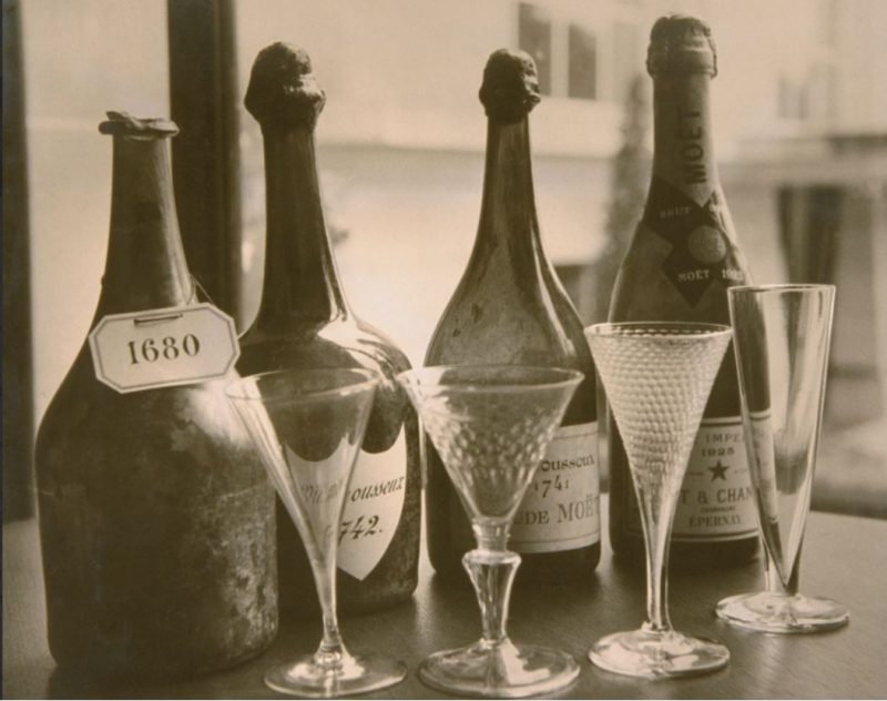 Anciennes bouteilles de Champagne Moët & Chandon (1680, 1741, 1742, 1925). Inrap. © Collection Moët & Chandon