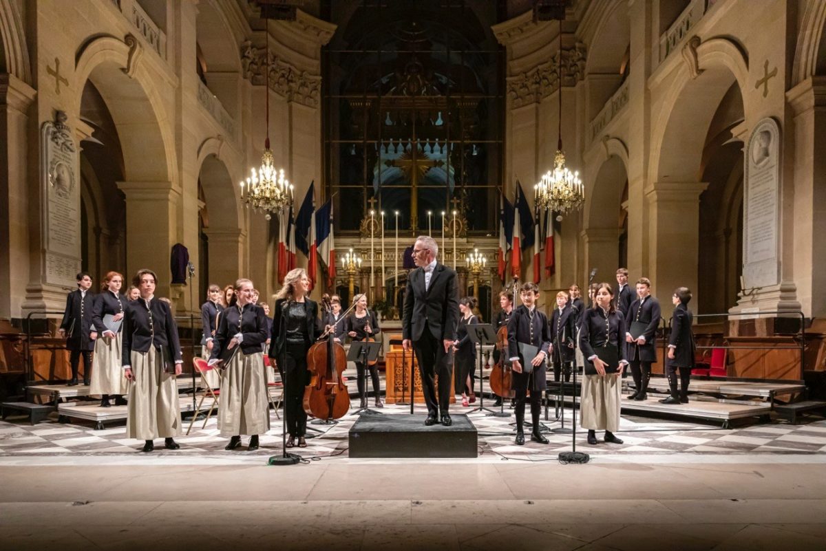 Ophélie Gaillard avec les Pages du CMBV en grande tenue, le 13 avril 2022, aux Invalides © Denis Meunier