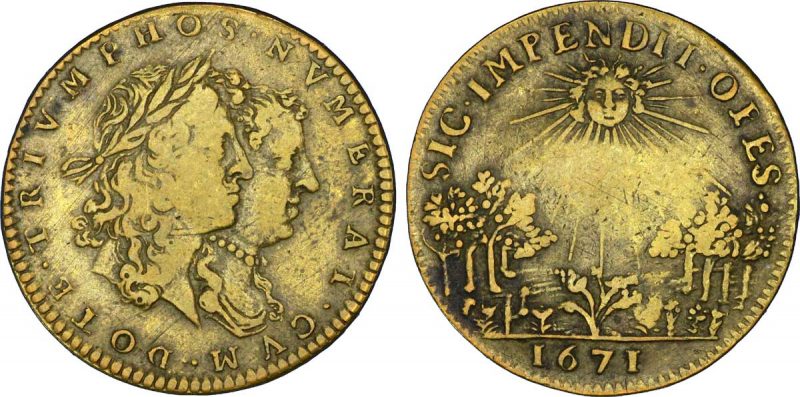 Jeton en laiton en l’honneur des noces de Louis XIV et de Marie-Thérèse d’Autriche (1671) – Source : Wikimedia Commons