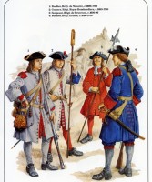 Soldats français de la fin du XVIIème siècle. Planche extraite de René Chartrand, Louis XIV’s Army, Osprey, Men-at-Arms. D.R.