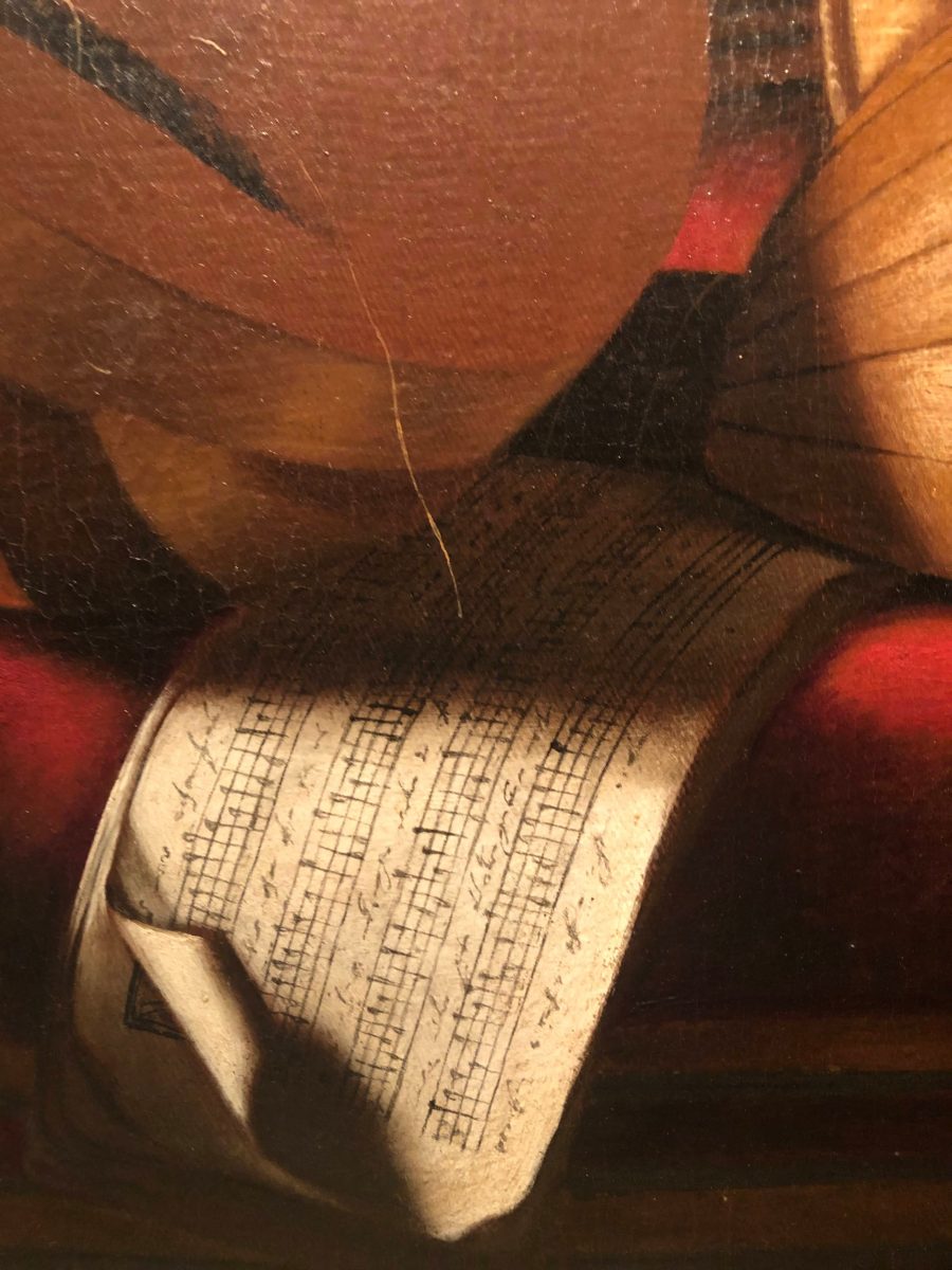 Evaristo Baschenis, Nature morte aux instruments de musique (détail) © Muse Baroque, 2022 avec l’aimable autorisation Galerie Canesso, Paris.