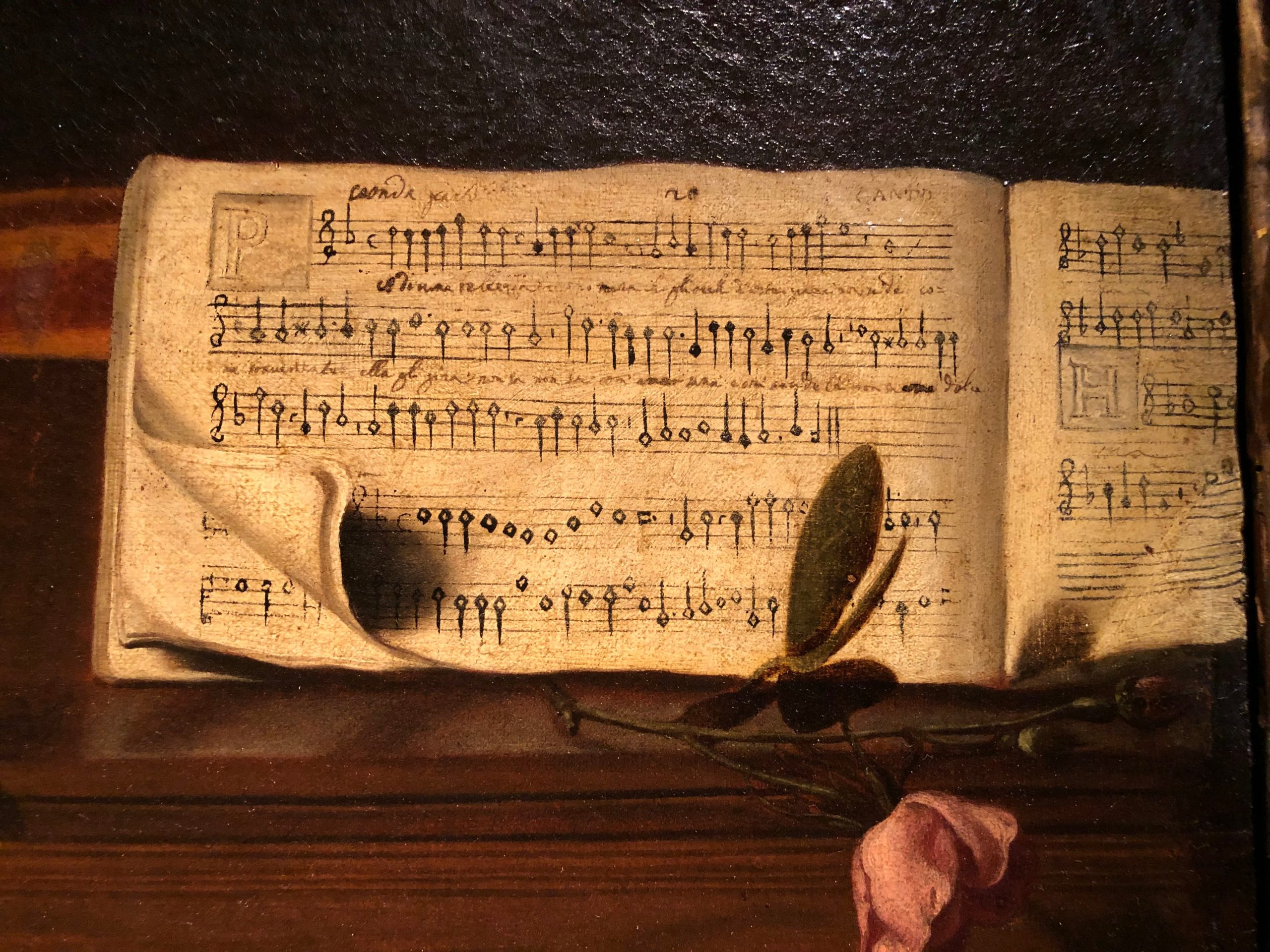 Evaristo Baschenis, Nature morte aux instruments de musique (détail) © Muse Baroque, 2022 avec l’aimable autorisation Galerie Canesso, Paris.