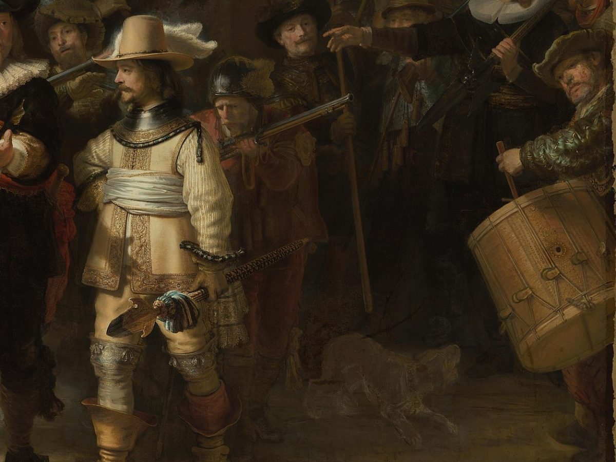 Rembrandt, La Ronde de Nuit (1642), huile sur toile, 363 × 437cm (détail), Rijkmuseum, Amsterdam – Cliché Wikimedia Commons