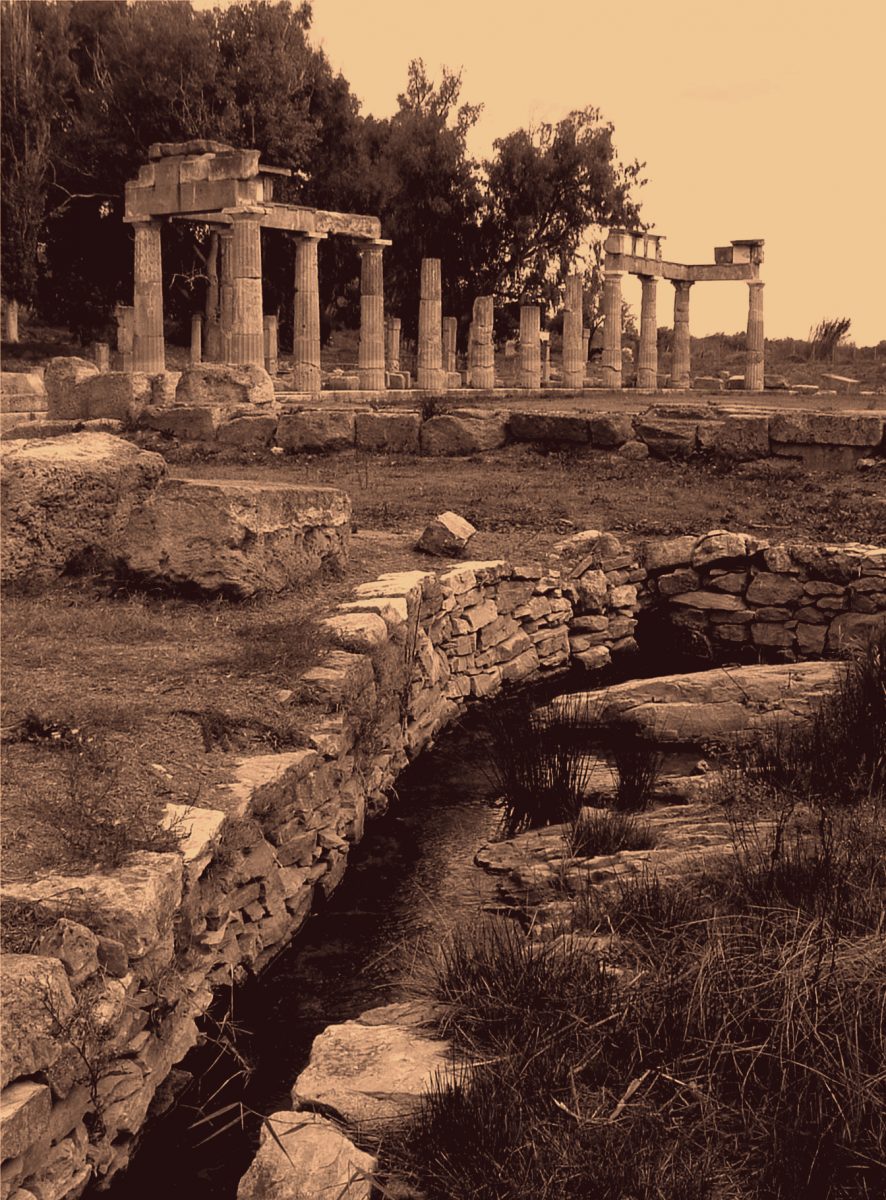 Stoa du sanctuaire d’Artémis à Brauron (Attique) – Source : Wikimedia Commons (retravaillée)