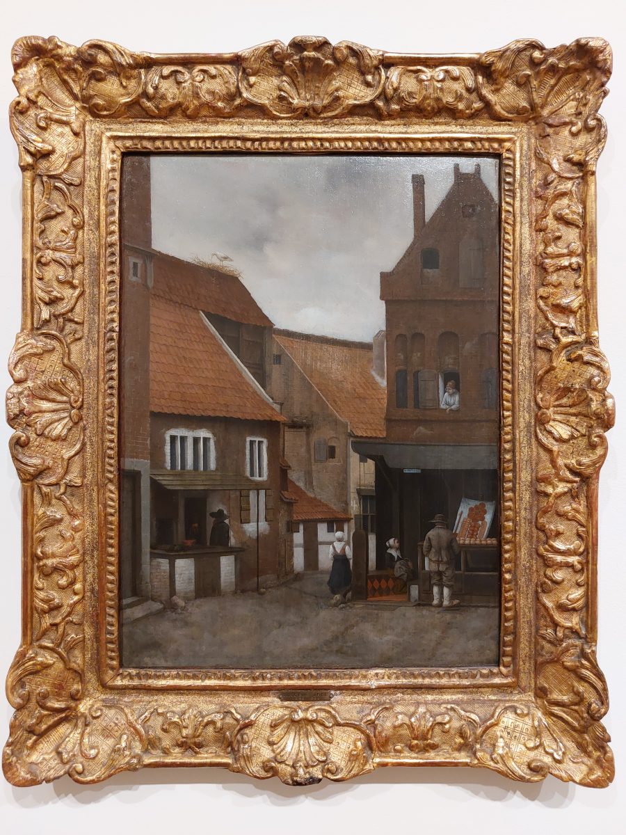 Jacobus Vrel, Scène de rue avec une boulangerie près d’un rempart, huile sur panneau, collection particulière / Fondation Custodia – Cliché Muse Baroque, 2023