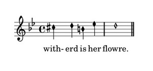 Par ailleurs, comme nous l’avons vu, certains mots aujourd’hui polysyllabiques étaient alors monosyllabiques. Ainsi, nous n’avons parfois qu’une seule note pour un mot qui en demanderait deux: