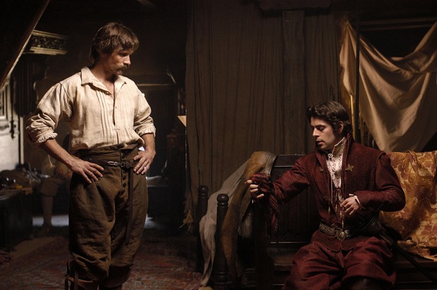 Alatriste... Entre 1993 et 2006, Arturo Pérez-Reverte publie les 6 tomes des Aventures du Capitaine Alatriste. Roman d'aventure, de cape et d'épée dans l'Espagne décadente de Philippe IV où plane l'ombre de l'Inquisition et la mainmise du tout-puissant ministre Gaspar de Guzmán, comte d'Olivares. Pourtant, il flotte sur ces romans un parfum subtil où les sombres intrigues, combats, sièges et autres effusions sanglantes cèdent souvent la place à une atmosphère lancinante, où la narration du jeune Íñigo Balboa, page et fils adoptif du "Capitaine" Alatriste (son grade n'est qu'un sobriquet) se teinte souvent de relents amers de romans noirs. Les eaux troubles dans lesquelles la capitaine essuie son épée, de tavernes en palais sont de celles qui serpentent lentement, invitant à s'y noyer, et chaque roman trempe sa plume dans thème différent, depuis les attentats de palais, les bûchers de l'Inquisition, la Guerre dans les Flandres, ou encore le théâtre du temps à travers les jupes de son amante l'actrice María de Castro.