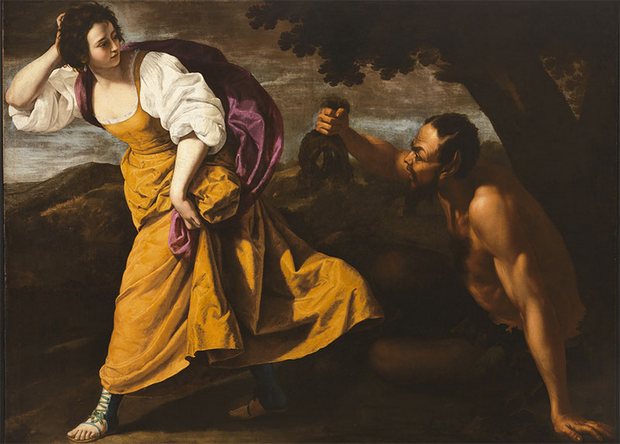 Judith et Holopherne (1612) De même que la précédente toile, Judith et sa servante Abra avec la tête d'Holopherne est présente dans plusieurs versions, qui permettent d'en apprécier les variations. La plus saisissante est celle détenue par le musée de Naples, qui offre un clair-obscur contrasté, animé par une flamme de bougie à la gauche du tableau, la tête d'Holopherne gisant au premier plan en bas dans les ténèbres. Dans un genre plus intime, on notera les portraits de femmes au luth, témoignant de l'engouement pour cet instrument : Autoportrait au luth, qui nous transmet le regard altier et déterminé de l'artiste, Sainte Cécile arborant fièrement son instrument délicat. Citons encore le riche et imposant Portrait d'une dame assise, à l'étourdissant rendu des fines broderies d'or du vêtement, ou encore la Danaé de plus petit format, aux superbes drapés pourpres qui se détache sur un fond de pluie d'or.