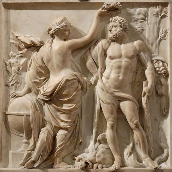 Desjardins (1637–1694), Hercule couronné par la Gloire (1671) © Musée du Louvre / Wikimedia Commons Relève aussi de la musicologie, et plus précisément de l’histoire de la musique, l’article de Jean-François Lattarico, qui présente Cavalli, l’opéra vénitien, ses évolutions, et en fait l’Ercole amante lui-même. Par ailleurs, l’ouvrage donne aussi d’autres points d’approche de cette œuvre ; les articles de Marianne Massin sur le mythe et de Richard Uhl, "Crise et mouvement dans Ercole amante", vont dans ce sens en explorant le contexte de création — qu’il s’agisse de la politique du moment ou des sources mythographiques — pour en tirer des interprétations originales sur Ercole amante qui permettent au lecteur — et, espérons-le, à l’auditeur-spectateur — d’aujourd’hui d’appréhender cette œuvre difficile dont les clefs nous sont en parties étrangères. Pont entre ces deux approches, les entretiens avec les "recréateurs" que furent, dans cette aventure, Ana Yepes et Gabriel Garrido, nous montrent comment, concrètement, les chanteurs, les danseurs, les voix et les corps, ont pu s’approprier les personnages, la musique, et de manière générale, l’œuvre. Des approches très diverses, complétée par une brève bibliographie, qui gagneraient sans doute à être présentées dans un ordre différent. Ainsi, ouvrir le volume par l’énigmatique texte de Pierre Kuentz n’était peut-être pas la solution la plus aisée pour aider le lecteur, alors que l’article de Jean-François Lattarico constitue, à notre sens, une belle introduction. Cependant l’ordre est justifié, et il s’agit bien d’un ordre : les textes ne sont pas simplement jetés au hasard dans le volume, mais groupés selon trois thèmes principaux : "du mythe", "de l’histoire", "de la musique". Dans la table des matières est indiqué aussi "du livret" pour introduire le texte de Buti et sa traduction ; il s’agit peut-être d’une maladresse, puisque le livret irrigue en fait l’ensemble des études, tout autant que la musique. Mais toute mise en ordre garde quelque chose d’artificiel : bien que "rangés" dans la partie sur le mythe, Richard Uhl et Marianne Massin ne se privent pas d’évoquer la musique — et c’est bien heureux ! Un autre (mince) regret cependant. Tout d’abord, et c’est gênant, nous n’avons pu trouver le nom du traducteur du livret ! S’agit-il d’une reprise du texte traduit fourni aux spectateurs en 1662 ? Nous ne le pensons pas. Le livre, dans l’ensemble, fait l’objet d’une présentation soignée et qui ne manque pas de personnalité. Le texte n’est pas tassé, les titres sont clairs, l’ensemble est joli. Deux regrets ici, cependant : d’abord la taille des caractères, un peu petits : il semble qu’ils fassent environ 10 points, pour une longueur de ligne d’une grosse douzaine de centimètres, c’est peu ; l’œil s’y fatigue et s’y perd un peu[1]. Par ailleurs, l’indentation au début de chaque paragraphe (à l’exception du premier) est bienvenu pour, là encore, aider le lecteur à se repérer dans la page. Objet étrange, oui, que ce livre qui, maintenant que l’Ercole amante fait parti du passé et n’a pas été reporté ni en disque ni en vidéo, complètera merveilleusement la version DVD de l’opéra dirigée par Ivor Bolton (Opus Arte, 2010).