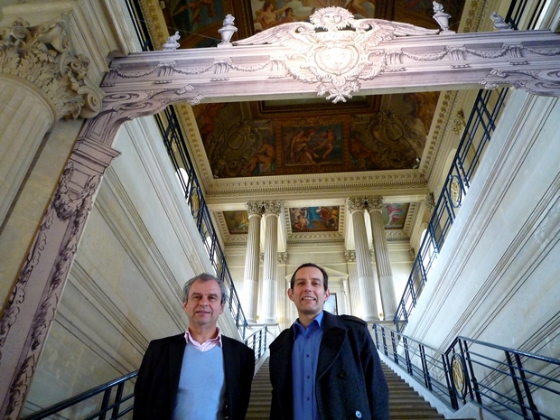 L'exposition "Dans l'atelier des Menus Plaisirs du roi. Spectacles, fêtes et cérémonies aux XVIIe et XVIIIe siècles." qui s'est tenue aux Archives nationales du 19 janvier au 24 avril 2011 a permis de ressembler une centaine de pièces exceptionnelles (croquis, dessins et gravures...) issue de l'Atelier des Menus Plaisirs du Roi. C'est avec émerveillement que nous vous avions relaté la découverte des œuvres de Bérain ou de Vigarani, d'un fond de scène ombragé à une machinerie de fontaine, d'une comédie-ballet à une tragédie lyrique, d'un costume de scène à un catafalque. Pourtant, même à la lecture du catalogue pourtant très complet, subsistaient nombres d'interrogations, à la fois sur la préparation d'une telle exposition et notamment sélection des œuvres (nous soupçonnions à tort une cabale anti-tragédies de Lully), et sur le souhait - désormais réalisé - de bénéficier de quelques éclairages moins centrés sur l'art graphique, tournés vers une analyse musicale faisant le lien entre les costumes et décors et les œuvres représentées. Aussi nous remercions vivement MM. Jérôme de La Gorce et Pierre Jugie, commissaires de l'exposition, d'avoir bien voulu accepter de nous recevoir et de répondre à notre insatiable curiosité.