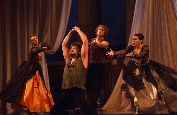 Jeudi 29 octobre 2009, J 27. Minuit et demi. Générale. Publique, bien évidemment: chaque membre de l’équipe a pu inviter deux personnes, et les élèves de plusieurs écoles sont conviés également. Nous avons donc une bonne demie-salle, pleine d’environ sept-cents personnes. Inutile de préciser que l’ébullition est à son comble, tout la journée — Marshall et Gerard se sont retrouvés à 8h ce matin, je ne les rejoins qu’à midi. Marshall, comme moi, à mesure que le spectacle approche, ne peut que vivre dans la salle, même s’il ne s’y passe rien, pour se calmer un peu, et Gerard a encore du travail: vaporiser les toiles de fond d’eau pour qu’elles s’étendent et perdent les plis dus à leur transport. Nous passons donc encore une longue journée à ne pas faire grand-chose, sinon discuter et boire du café dans la salle à demie-obscure. A partir de 17h la vie commence à s’amplifier dans les coulisses, les allers-retours des différents membres des différentes équipes (habillage, maquillage, coiffure, stage management, orchestre…) dans les escaliers s’augmentant… Je me poste à nouveau dans la fosse, à côté de Maestro, car nous ne pouvons guère nous arrêter aujourd’hui! Je crois que c’est un des meilleurs endroits pour voir le spectacle, et bien qu’assis à côté des premiers violons, j’arrive à vraiment très bien percevoir la ligne de basse qui me paraît encore plus profonde et puissante d’ici. Mais c’est aussi un emplacement à haut-risque, puisqu’Andrew manque de m’assommer lors du premier chœur, m’assénant un violent coup de coude sur la caboche, dans la fièvre de sa direction. La présentation commence par quelques raccords avec l’orchestre, puis nous commençons, tendus, mais assez confiants. Tout se passe magnifiquement, rien ne pêche, mis à part quelques détails imperceptibles du public — je suis très très content du français. Olivier a enfin reçu ses lentilles noires (il a des yeux bleus très clairs au naturel), qui lui voilent tout l’iris et la pupille. Il a l’air plus que terrifiant — je tremble quand il se tourne vers la fosse à un moment de son premier air. Et le spectacle est vraiment sublime, je ne peux pas contenir mon enthousiasme à l’entr’acte II et III et cours dans les loges de tout le monde pour les embrasser et les complimenter comme il se doit, sans oublier le chœur! Tout le monde ressort donc très content (je ne parlerai pas des superstitions qui peuvent entacher cette joie, par superstition… mais les superstitions théâtrales ne semblent pas être les mêmes du tout ici), épuisés, mais extrêmement heureux, rassurés, et heureux! Demain, day off nécessaire à tous, avant la première de samedi!