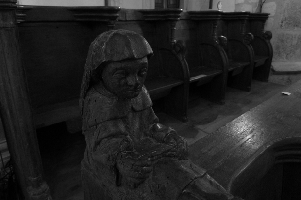 Abbatiale d'Ambronay, stalles du XVe siècle © VLN / Muse Baroque, 2012 L’orchestre est plein de couleurs et de personnalité. L’équilibre, d’abord, est idéal ; rarement on entend ce répertoire avec à la fois une qualité de son dans laquelle on se love avec délice et une clarté de l’écriture qui charme l’entendement. Aucun pupitre ne prend le pas sur les autres : on entend aussi bien les cordes que les bois et les cuivres. Les violons sont brillants et précis sans être cassants ou clinquants, les violoncelles comme les altos sont un appui sûr qui sait se faire entendre (oui, les altos aussi) quand la partition leur donne une belle ligne. Les cors ne tonnent pas, mais chantent. Au début de l’Inachevée, la fusion entre hautbois et clarinette est parfaite. Signalons d’ailleurs le son riche et chaleureux du premier hautbois, Emmanuel Laporte, à qui maintes belles phrases sont confiées comme par prémonition dans les partitions. Et puis il y a cet enthousiasme dans la précision qui est peut-être, avec l’opulence du timbre, une des signatures des Musiciens du Louvre. Marc Minkowski dirige avec raison et sentiment. Il sait ménager la dramaturgie des deux symphonies, choisir ses tempos avec soin — point trop d’empressement dans le premier mouvement de l’Inachevée, par exemple, le rend peut-être plus envoûtant encore. À aucun moment le tempo ne semble aléatoire ou affecté. De l’énergie, il en a aussi, mais il en use avec art pour n’exploser qu’au bon moment — au cataclysme de l’andante con moto de la Grande, par exemple, ou dans l’allegro vivace de cette même symphonie. De la sensibilité, on n’en manque guère — et c’est tant mieux, on parle de Schubert tout de même — mais sans jamais tomber dans la sensiblerie. Tout est d’une évidence et d’un enthousiasme qui parlent au cœur. On a l’impression qu’il n’y avait qu’à se laisser porter par cette musique et cette lecture d’une passion fusionnelle, que Marc Minkowski et les Musiciens du Louvre ont attrapé le public d’Ambronay à cinq heures de l’après-midi pour ne le reposer à terre qu’après leur office musical quasi-divin accompli. Oui, décidément, on ne s’égare guère avec ces guides-là.