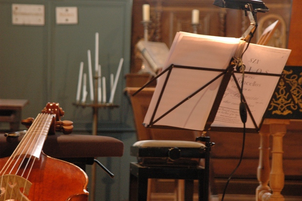 "La peinture est une poésie qui se voit au lieu de se sentir et la poésie est une peinture qui se sent au lieu de se voir." (Leonard de Vinci) Bruno Cocset a été le musicien le plus présent du festival, faisant le voyage d'un violoncelliste en Normandie. Des pièces anglaises pour viole & basse puis des Fantaisies pour cordes purcelliennes de la veille à ce programme original autour de la figure de Geminiani, sans même compter son exposé sur l'histoire du violoncelle, le musicien promène son archet souriant et passionné, n'hésitant pas à recourir à des expérimentations sonores grâce aux instruments conçus sur mesure pour ses projets. Grâce au pérégrinations étonnantes de Geminiani des salons londoniens aux brumes de l'Hibernie, entre pubs et palais, de la taverne aux salons, Bruno Cocset et ses compagnons ont livré un parcours rêveur et contrasté, généreux et sans autre prétention qu'une musicalité colorée et épanouie. La Sonate en la mineur de Bononcini s'ouvre avec fluidité et douceur, enveloppant l'église à l'excellente acoustique des timbres grainés des cordes de Bruno Cocset et Richard Myron relevés par l'harmonie cristalline du clavecin de Maude Gratton un brin austère. Le jeu de Bruno Cocset laisse voir son habituelle virtuosité discrète, son refus de la facilité mélodique, articulant son discours avec naturel, insistant sur les harmoniques, n'hésitant pas, au gré de sa respiration et de son instinct expressif à fragmenter la mélodie ou à la recomposer par un phrasé audacieux. Le second mouvement s'avère plus joueur, le dernier réminiscent de l'élégance de Jean-Marie Leclair.