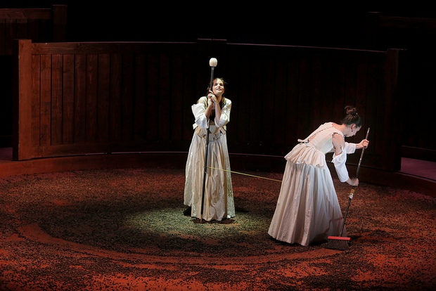 Elena à Aix pendant les répétitions © Patrick Berger/ArtComArt L’étincelle ultime est la Elena chantée par une Emöke Barath insurpassable. Cette jeune soprano a débuté son parcours international comme lauréate de la Compétition Pietro Antonio Cesti du Festival d’Innsbruck et elle demeure une des meilleures voix dans la splendeur, la couleur et la maîtrise intelligente de l’ornement. Nous sommes ahuris par son incarnation. Elena subit une initiation à l’amour. Elena est tout d’abord une jeune fille, innocente, qui joue, attirée par la force et le physique de Thésée d’abord, puis charmée par les feux de sa concupiscence et enfin elle succombe à la flamme sincère de Menelas. Un voyage dans l’univers sensible de cette Carte du Tendre tellement chère au baroque. Grande surprise de cette soirée est Valer Barna-Sabadus, qui n'était pas présent lors des représentations de Montpellier. S’il est vrai que nos propos ont été plus sévères lors de ses prestations passées, ici le jeune contreténor roumain se surpasse et excelle. Il est tour à tour d’un comique désopilant, d’une langueur touchante avec des ornements empreints d’équilibre et de poésie. Il améliore sa ligne qu’un vibrato trop présent obstruait dans les autres répertoires. Il s’investit théâtralement et nous révèle une sensibilité à la fois marquée par l’élégance et la passion. En opposition dramatique, Fernando Guimaraes en Teseo soudard à la Velazquez et Lope de Vega. Il devient la concupiscence incarnée, avec des moments d’un élégiaque splendide. La bravoure, l’héroïsme et la continence au service de la pulsion et de l’affect, nous sommes envoûtés par cette prise de rôle où le registre de Fernando Guimaraes se déploie dans toute la gamme de ses capacités. A la fois lyrique à l’extrême et piqué par la fureur d’aimer, le Teseo de Fernando Guimaraes ressemble aux amoureux transis des temps contemporains, ceux qui s’entichent d’un désir d’un soir et qui ne s’engagent pas. Encore une fois Jean-Yves Ruf a tellement compris les subtilités du texte qu’il nous reflète un peu de nous dans ce Teseo magistral. Remplaçant l’inénarrable Emiliano Gonzalez Toro en Iro, le jeune ténor Zachary Wilder est incroyable. L’humour transparaît tout du long et à chaque intervention. D’une voix affirmée et belle, Zachary Wilder s’impose comme un ténor qui peut à la fois divertir et toucher. Une belle énergie et personnalité sur scène font un mélange riche de rebondissements. Avec un léger désappointement, nous avons découvert l’Ippolita de Kitty Whately. Si le rôle est un des plus intéressants puisqu’il possède les airs les plus déchirants, les plus touchants et vibrants de l’opéra, nous sommes étonnés que Mlle Whately soit restée tout le temps sur la même émotion. Digne ancêtre des Bradamante (Alcina) et de Amastre (Serse) haendéliennes, l’Ippolita vindicative et blessée ici elle n’est qu’une furie. Dommage pour ce rôle en or qui ponctue d’une musique splendide les scènes libertines des autres personnages. Une amazone au rabais en définitive. Pour les petits rôles nous mettons en avant la vibrante prestation du jeune contreténor Christopher Lowrey, excellent et génial. Les Nettuno et Tindaro splendides de Krzysztof Baczyk est d’une élégance et d’une profondeur incroyables, cette jeune basse polonaise mérite le détour. De même la charmante soprano Francesca Aspromonte et le Menesteo vindicatif d'Anna Rheinold.
