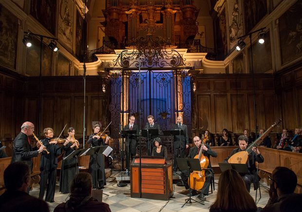 Les Passions, Orchestre Baroque de Montauban : Jean-Marc Andrieu & Stéphanie Cettolo, flûte à bec. Myriam Gevers & Nathalie Fontaine, violons. Étienne Mangot, basse d’archet. Ronaldo Lopes, théorbe Yasuko Uyama-Bouvard, orgue positif