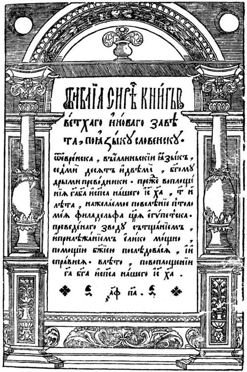 Page de titre de la Bible d’Ostrog imprimée par Ivan Fiodorov en 1581 © Wikimedia Commons