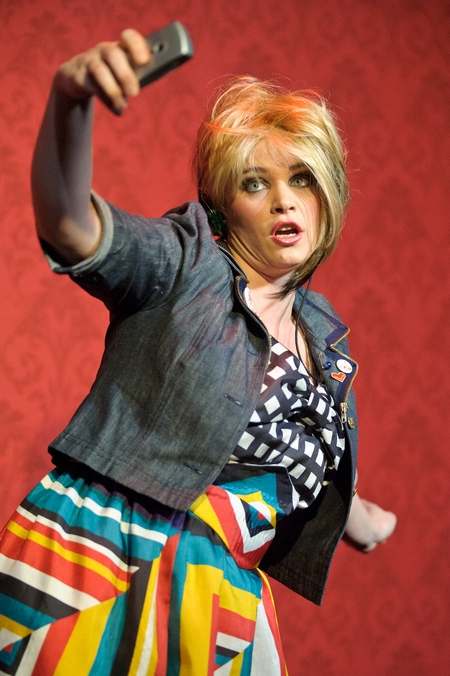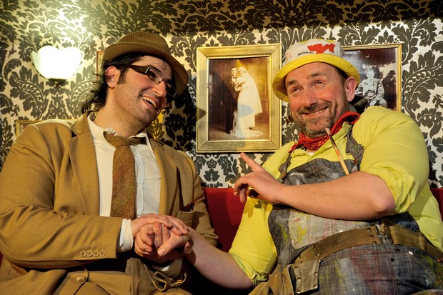 © Julien Schwartz Leurs qualités vocales ne sont pas en reste. Côté féminin, Edwige Bourdy possède une bonne diction (même lorsqu'elle déguste les Chamallows de sa nièce !) et un timbre légèrement cuivré qui sied bien à son rôle d'épouse mûre, lasse de son époux intempérant mais prête à comploter pour satisfaire les amours (et la réussite sociale...) de Colette. Performance d'autant plus remarquable qu'il s'agissait, répétons-le, d'un remplacement de dernière minute. Dans le rôle de Colette, Estelle Béreau campe une jeune fille rouée et gourmande de plaisirs, mais également calculatrice. Sa voix claire et assurée est à l'aise dans le chant comme dans les dialogues. Les rôles masculins reposent sur de solides épaules. Tout d'abord soulignons la voix de ténor chaude et claire d'Artavad Sargsyan, à la déclamation un peu tonitruante pour cet espace réduit et au jeu appuyé (en particulier dans les scènes d'ivresse). Paul-Alexandre Dubois (Lucas) possède lui aussi un jeu très convaincant, vigneron ivrogne rabelaisien en diable à la voix ample de stentor. Enfin Guillaume Andrieux (Cléon) mène la cabale avec le détachement de celui qui est certain de sa victoire, montrant sa sensibilité lors de sa déclaration d'amour mais pas jusqu'à se laisser totalement duper par la calculatrice Colette, dont il semble avoir deviné la véritable ambition. Aux antipodes de la mythologie traditionnelle, à mille lieues des perruques poudrées et des Deus ex machina du répertoire traditionnel, laissez-vous enivrer par cet Ivrogne : à consommer sans modération !