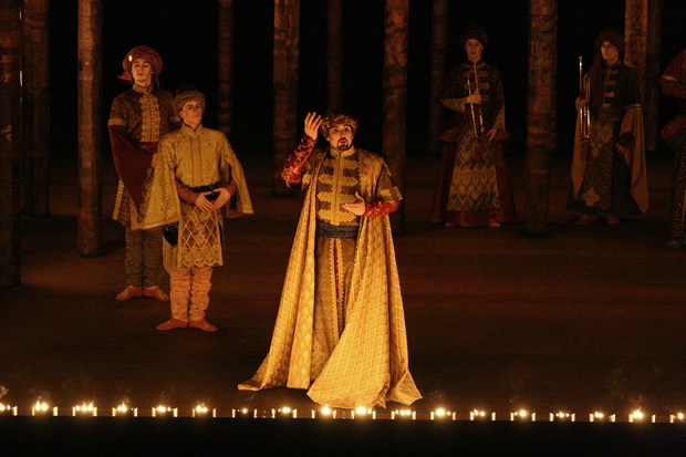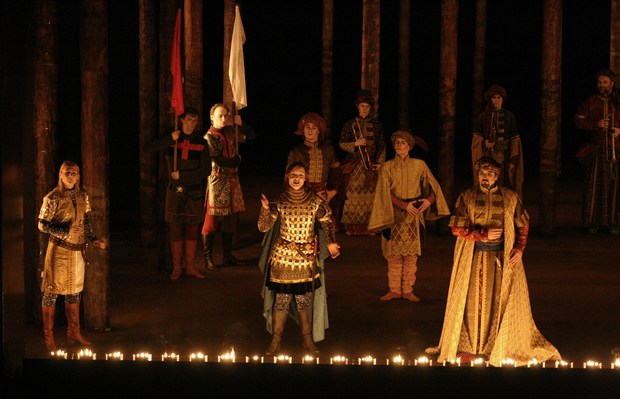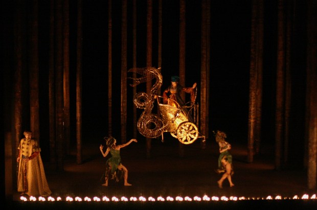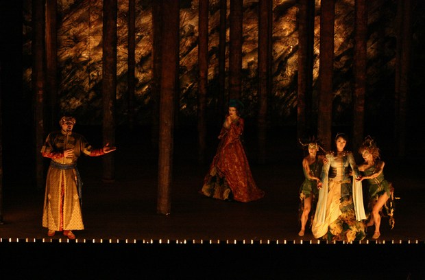 © Hana Smejkalova Rinaldo fut le premier succès du jeune Haendel, alors âgé d'un peu plus de 25 ans, sur les scènes londoniennes, en l'occurrence celle du Queen's Theatre de Haymarket. Son jeune directeur, Aaron Hill, avait de son côté réuni tous les ingrédients d'une réussite annoncée : canevas tiré de La Jérusalem délivrée du Tasse (un "best-seller" de la fin du XVIIème siècle...), machines de scène à profusion (en ce temps où n'existait pas le septième art, l'opéra était le lieu de prédilection de ce que l'on appelait pas encore les "effets spéciaux"...), et stars du chant (les castrats Urbani et Nicolini, les chanteuses Francesca Vanini Boschi et Isabella Giradeau), sans compter évidemment le recours à un jeune compositeur de génie. Le livret comporte de nombreux éléments de merveilleux médiéval, prétextes à des interventions de machines toutes plus spectaculaires les unes que les autres : la magicienne Armide, maître du roi des Sarrasins Argante, apparaissant sur son char tiré par un dragon ; la barque qui emmène les chevaliers vers l'île enchantée d'Armide...S'y ajoutent de nombreux ballets, en particulier aux troisième acte (combat pour délivrer Rinaldo puis affrontement des Chrétiens et des Sarrasins). Pour restituer cette brillante atmosphère, Louise Moaty n'a pas lésiné sur les moyens : costumes à la mode médiévale, décors soignés, char d'Armide tombant des cintres, barque improbable enlevée par les sirènes. Les ballets sont habilement suggérés par quelques danseurs esquissant des pantomines adaptées au déroulé de l'action. Sur des décors généralement sombres, les bougies cachées au premier plan de la scène diffusent des lumières dorées du plus bel effet, à peine appuyées par quelques projecteurs. Ne serait-ce l'intime cadre à l'italienne de l'opéra de Rennes, avec son imposant foyer en rotonde, on se croirait donc ramené à une représentation originale au Queen's Theatre...