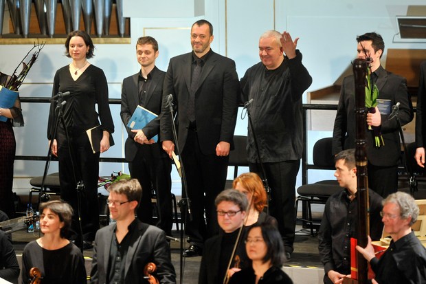 Marc Minkowski et ses Musiciens du Louvre à Cracovie © Andrzej Rubis, 2011 La direction de Marc Minkowski a fortifié la synthèse entre les différents éléments pour donner une vision claire de la pensée polyphonique et contrapuntique de Bach. De sa baguette ductile, il a dessiné les lignes de tension et les couleurs sombres et intimistes qui caractérisent la première partie dans la tonalité de si mineur et a su donner l’éclat lumineux à la seconde partie en ré majeur, restituant toute la délicate subtilité et la tension de l’inspiration en particulier dans le Benedictus et l’Agnus Dei. Le choix déjà retenu dans l’enregistrement de dix voix solistes pour chanter la messe et le chœur a opéré en conférant à la musique toute sa grandeur pour célébrer à l’unisson la foi en Dieu et en sa miséricorde, sans dramatisation excessive ni théâtralité. Les interprètes : sopranos (Ruby Hughes, Ana Quintans, Pauline Sabatier, Blandine Staskiewicz), altos (Terry Wey), ténors (Emilio Gonzalez Toro, Colin Balzer), basses (Christian Immler, Luca Tittoto) étaient tous très investis dans ce climat religieux pour transmettre à l’auditeur une part de recueillement et de prière. L’ effectif orchestral a soutenu sans faille le projet artistique du chef qui , tout en soulignant les contrastes expressifs de la partition et ses différentes articulations, a maintenu l’équilibre et l’harmonie d’une œuvre d’art musical de tous les temps de tous les peuples.