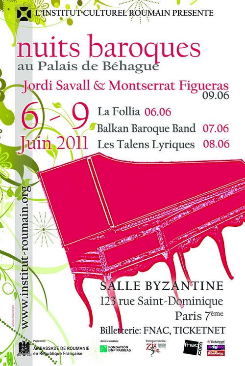 Nuits Baroques au Palais de Behague Institut culturel roumain de Paris 5 - 9 juin 2011