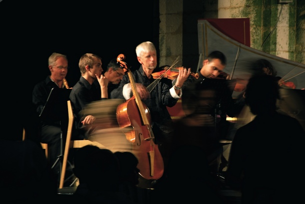 Mais votre serviteur fidèle, critique impavide, ne s’est pas laissé gagner par tant de jeunesse éclatante, et a fait son travail avec le plus grand professionnalisme. Ce qui ne l’a pas empêché d’être conquis immédiatement, séduit, happé par cette magnifique production, heureusement portée par la belle acoustique de l’église, production qui aurait bien plus de raison de figurer sur les plus grandes scènes musicales parisiennes que bien des spectacles qui parfois ne lassent pas de nous désoler. A commencer par la mise en scène pourtant simple d’Henry Dupont, emplie de costumes éclatants et beaux (retenons surtout celui de Phoebus, que n’aurait pas refusé Louis XIV dans Le Ballet de la Nuit), inspiré du théâtre baroque. Pas de remplissage inutile, pas de faibles chorégraphies pour meubler les ballets, mais un profond respect de la musique et du texte, et une prise en compte de l’espace qui était à disposition, se permettant des entrées et sorties par l’allée centrale — y plaçant même deux sopranos et une basse pour le chœur final, dont toute l’église s’est trouvée submergée avec grâce. Et surtout, l’on sent un véritable enthousiasme chez les chanteurs à se plier avec espièglerie et délice à cette mise en scène. Mais bien sûr, que serait une mise en scène d’opéra réussie, si l’orchestre n’y mettait pas du sien ? Encore une fois, le plaisir de jouer est évident, palpable, non seulement agréable, mais presque noble. Sous la baguette subtile et enlevée de Michel Laplénie, les notes volent, fusent avec légèreté et délicatesse — que dire de l’air du Sommeil à l’acte deux (le fameux ‘Hush, no more…’, repris ensuite par le chœur), d’une mesure parfaite, dont les silences qui le ponctuent, au lieu de le rendre pesant comme c’est parfois le cas, au contraire, l’emplissaient d’une belle tension, qui nous tenaient en haleine, attendant pantois la suite? —, les académiciens (qu’il nous semblait nécessaire de tous nommer plus haut, au même titre que les solistes chanteurs) nous régalent d'une énergie bouillonnante, faisant montre d’une cohésion profonde. Des violons très doux, suaves (notamment dans la danse des fées acte II), parfois pleins d’allant et piquants (marche en ouverture de l’acte quatre, alors portés aussi par les trompettes et la timbale entraînante d’Aurore Bassez), tenus sur une ligne, sont soutenus par un magnifique continuo, dominé par les cordes — les clavecins étant d’une discrète présence. Si l’on se surprendra à déplorer le peu de théorbes, instrument représenté par le solitaire Fabien Brandel, qui prend toute sa place dans l’air de la Plainte dans l'Acte V, soutenant avec grâce un tendre et émouvant solo de viole de gambe (Ondine Lacorne-Hebrard dans la représentation du huit août, Justin Glaie dans celle du lendemain), l’ensemble du continuo a une belle ampleur, tout en étant chargé de la même délicatesse que le reste de l’orchestre, qu’il sait parfois entraîner avec force quand il le faut. Le basson d’Isaure Lavergne ponctue subtilement avec rondeur les hautbois dans le Hornpipe concluant le troisième acte, tandis que Nicolas Verhoeven, aux soli continuistes du violoncelle, amène une agréable énergie. Mais, surtout et par dessus toutes leurs qualités individuelles, les continuistes ont une parfaite écoute des chanteurs, qu’ils soutiennent avec générosité.