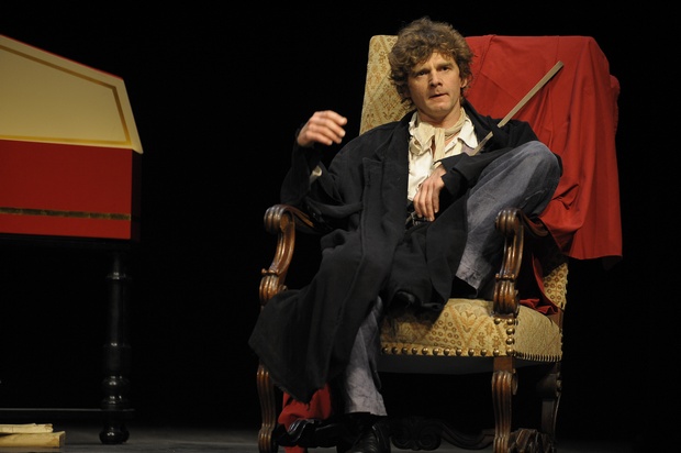 Nicolas Vaude dans le Neveu de Rameau - DR Mais le programme indique bien un invité surprise pour clôturer le concert et la fin du concert approche. Sous les applaudissements d’un théâtre qui lui est familier c’est Nicolas Vaude* qui vient camper pour l’occasion un étrange Telemann, déclamant entre chaque pièce des Fantaisies les bribes d’une autobiographie pour le moins décontractée. Songez que des gros mots furent prononcés. Quel choc ! Passe encore que les compositeurs Allemands s’inspirent du style Français et empruntent sans vergogne les ouvertures de Rameau et consorts. Mais qu’ils nous volent ainsi nos insultes et nos jurons, véritables joyaux de notre culture, cimes fleuries de notre belle langue, c’est proprement inacceptable ! Calmons-nous cependant et soyons sérieux encore quelques secondes. Sans être tout-à-fait irrésistible cette petite séquence de duettistes aura le mérite de terminer la soirée dans la complicité et les sourires. Depuis son entrée en scène Olivier Baumont avait déjà pris soin de présenter chaque œuvre avec simplicité, jubilation et bonne humeur, en authentique amoureux de son instrument et de son art qui, de toute évidence, le lui rendent bien.