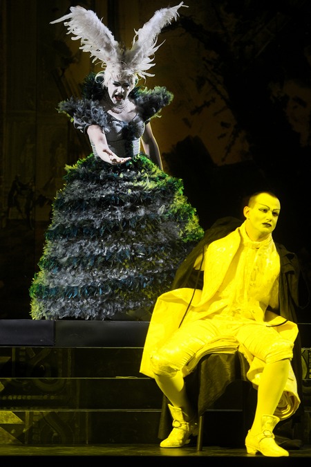 Dans le rôle d’Artaban, Juan Sancho nous a un peu déçus. Certes la voix a une belle épaisseur et sait imposer sa projection face à l’orchestre, mais le timbre affiche dans les passages les plus difficiles un vibrato très gênant. Ce défaut est particulièrement évident au final du morceau de bravoure « Non ti son padre », pourtant bien servi par les imprécations des cordes, ainsi que dans l’air du second acte « Amalo a se », face à un orchestre rutilant de tous ses cuivres. Et c’est bien à la peine qu’il conclu le second acte, parmi les éclairs et le roulement du tonnerre (« Così stupisce e cade »). Mégabise, personnage secondaire de l’action, est peu présent dans la partition, mais la difficulté vocale du rôle est bien réelle. Doté d’une belle épaisseur qui en accentue l’expressivité, appuyée sur un timbre bien stable, la voix de Yuriy Mynenko parvient à s’imposer avec conviction face à un orchestre foisonnant dans la parabole guerrière (« Sogna il guerrier »), même si on eût aimé une projection plus affirmée pour cette première apparition. Le timbre se fait plus ensuite plus impérieux pour délivrer l’exhortation du second acte (« Non temer ch’io mai ti dica »), tandis la projection se hausse enfin au dernier air (« Ardito ti renda ») mettant brillamment en valeur les ornements pyrotechniques. Du côté des rôles féminins, tant Max-Emanuel Cencic (Mandane) que Valer Barna Sabadus (Semira) donnent habilement le change au plan physique, presque méconnaissables avec leur visage copieusement blanchi sous une épaisse couche de poudre, se mouvant avec grâce dans des robes à décolletés, et rehaussés d’invraisemblables coiffes à plumes … Les spectateurs nancéens avaient certes pu apprécier il y a quelques mois sur cette même scène l’ingénuité mise par Max-Emanuel Cencic à incarner un rôle féminin (en l’occurrence, celui du Prince Orlofsky dans la Chauve-Souris de Johann Strauss), mais le résultat est ici particulièrement confondant ! Le « Conservati fedele » déborde d’une grâce enjouée, dont les mélismes s’enchaînent avec bonheur. Les moments forts de la prestation du contre-ténor, tous deux longuement et fort justement applaudis, demeurent toutefois les ornements filés, touchants de délicatesse, du « Se d’un amor tiranno », et dans un tout autre registre les imprécations de fureur du « Va’ tra le selve ircane » qui témoignent d’un bel abattage. Ajoutons aussi que Max-Emanuel Cencic, dont on connaît le penchant notoire à chanter aux côtés d’autres contre-ténors (voir encore son récent enregistrement des Duetti avec Philippe Jaroussky), semble largement à l’origine du projet de cette distribution ambitieuse, dont il nous avait d’ailleurs fait part dans l’entretien qu’il avait accordé à la Muse Baroque en juin 2011 ; qu’il soit ici loué pour cette heureuse initiative