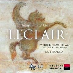 | Genre : musique de chambre Jean-Marie LECLAIR (1697-1764) Intégrale des sonates du Quatrième Livre Patrick Bismuth (violon et direction), Valérie Balssa (traverso = flûte allemande) La Tempesta : Hélène Dufour (clavecin), Mathias Spaeter (théorbe), David Simpson, Lucas Guimaraes & Martin Bauer (violes de gambe) 3 CD – Zig-Zag Territoires – 2005