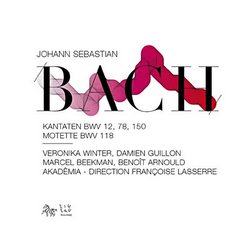 Il faut dire aussi qu'Akadêmia a rassemblé une équipe de solistes de haut vol, très homogènes, capables d'une cohésion sans faille dans les passages choraux - dont témoigne les redoutables entrées fuguées du "Weinen, Sorgen, Klagen, Sorgen, Zagen" qui s'ajustent ici avec une précision millimétrée et une rondeur tout à fait bluffantes notamment dans les harmoniques - mais aussi d'une humilité dans les parties solistes qui font de ces chanteurs une équipe soudée et protéiforme. Le sautillant duetto "Wir eilen mit Schwachen" sur fond de pizzicatti bonhommes permet aux timbres clairs de Veronika Winter et Damien Guillon de se marier avec grâce. Certes, l'émission de la soprano semble un brin aplatie, la voix manquant de corps et de projection, mais ce caractère innocent, doublé d'aigus purs et d'une agilité certaine n'est pas déplacé ici et convient à l'approche ciselée et cristalline qu'a choisi Françoise Lasserre. Le "Doch bin and bleibe ich vergnügt" (BWV 150) aurait toutefois pu être plus vigoureux, avec des attaques plus fermes. Damien Guillon, quant à lui, fait valoir un timbre assuré et égal sur la tessiture, et un art consommé du phrasé. Le célèbre "Kreuz und Krone" avec hautbois obligé est ainsi interprété avec une aisance et un naturel, sur un rythme coulant. En descendant dans les registres, Marcel Beekman use avec à-propos d'un ténor chaleureux, capable de très jolis sons tenus, à l'émission régulière. Le "Sei getreu" (BWV 12) accompagné d'une perçante tromba da tirarsi y gagne ainsi une tranquille poésie, une assurance sereine, en dépit de mélismes trop appliqués. Les récitatifs sont également un peu trop artificiels, en dépit des tentatives d'effets déclamatoires dramatiques (Ach! Ich bin ein Kind der Sünden" du BWV 78) loin de l'inégalable Kurt Equiluz chez Harnoncourt (Teldec). Enfin, si le baryton de Benoît Arnould est un peu léger, son engagement sincère et inspiré, son timbre grainé et sa virtuosité font plaisir à entendre. Le "Nun du wirst mein wissen stillen" de la BWV 78 dynamique et fier, le "Ich folge Christo nach" de la BWV 12 nuancé et persuasif. Françoise Lasserre a opté pour une lecture personnelle et chambriste de ces cantates (et du motet ou cantate funèbre final donné dans sa 2ème version avec les cordes), le climat est tendre, d'une douceur berçante renforcée par une basse continue structurante sans pour autant insuffler trop d'énergie, d'un moelleux sophistiqué avec une très forte prééminence accordée aux voix. Certains plaideront pour une vision plus franche et plus contrastée, ou pour des tempi plus recueillis et des chœurs plus amples qui insisteraient plus sur l'aspect liturgique des pièces. Reste un enregistrement léger mais fervent, aux chœurs d'une singulière beauté, et un orchestre discret et multicolore dont on regrettera simplement l'aspect un peu trop élégamment cursif.