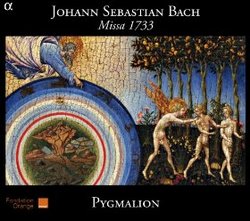 La Messe en Si est une œuvre tellement jouée et rejouée, entendue partout et par tous, qu'elle appelle inévitablement un auditeur avisé à faire des comparaisons (avec les grandes interprétations marquantes telles que celles de Leonhardt, Herreweghe 1, 2 & 3, Minkowski ou Harnoncourt 1 & 2). Et ceci est d'autant plus vrai pour celle de Pygmalion que les choix et parti-pris semblent inhabituels et inattendus. Pourquoi donc choisir un tempo aussi lent dans le premier ''Kyrie'' et au contraire jouer le ''Christe'' à la limite du "trop vite" ? Le même problème de tempi extrêmes se pose à propos du fameux ''Laudamus te'' où le violon et la voix s'entremêlent avec virtuosité dans ce duo de toute beauté ? De nombreuses questions donc sur les choix d'interprétation et qui finalement trouvent en grande partie leurs réponses à la simple lecture du livret qui accompagne le disque, rédigé par Raphaël Pichon lui-même. En effet, il semble que le jeune chef ait comme anticipé les critiques ou commentaires qui pourraient lui être faits, les choix qui pourraient lui être reprochés, les intentions qui ne seraient pas comprises. On peut alors, à partir de là, entreprendre une nouvelle écoute de l’œuvre, plus ouverte et disponible à l'interprétation que nous proposent Raphaël Pichon et son ensemble. Passée la petite déception initiale d'un tempo trop lent et d'un son retenu, l'extrême clarté du chœur et la beauté de l'élan parviennent finalement à nous convaincre assez vite. Les hautbois très chantants d'Emmanuel Laporte et Jasu Moisio mettent parfaitement en valeur les sublimes dissonances de ce ''Kyrie'' dramatique et préparent ainsi les entrées magiques du chœur. La sensation d'une unité et d'une symbiose parfaites entre les choristes de chacune des quatre voix nous frappe et ne cesse de nous impressionner, depuis les premiers enregistrements de Pygmalion déjà. C'est incontestablement le chœur qui fait une des grandes forces de cette Messe. Le ''Christe'' quant à lui surprend par la rapidité de son tempo, faisant alors courir les basses et donnant à l'ensemble de l'air un caractère peut-être trop agité. Raphaël Pichon explique avoir voulu "dépeindre un caractère de joie simple et légère", ce que l'articulation raffinée des violons traduit très bien. Mais l'ensemble sonne malheureusement trop vite et les nombreux ornements n'ont tout simplement pas le temps de se déployer.