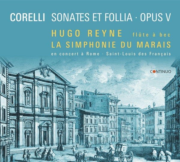 Après des concertos pour flûtes de Vivaldi (Musiques à La Chabotterie, 2013) au sujet desquels nous avions dit tout le bien que nous pensions d'Hugo Reyne en tant que soliste, voici les célèbres Sonates et Follia opus V de Corelli, transposées pour la flûte à bec, conformément aux pratiques du temps. D'ailleurs Frans Brüggen avait donné les sonates 7 à 11 chez Das Alte Werk (Teldec). Si les premières mesures surprennent, tant nous sommes habitués au timbre plus habituel du violon, cette version-ci, captée en concert, laisse découvrir une infinie tendresse et rondeur. C'est donc à un concert intimiste, enregistré de très près alors qu'on aurait pu craindre la réverbération de la belle nef de Saint Louis des Français, tout à fait en contresens du cadre grandiose de cet édifice et du clair-obscur violent des toiles du Caravage qui ornent la Capella Contarelli. Hugo Reyne sculpte son Corelli tout en souplesse et en sourire, enchaînant les Allegros de la première sonate avec une aisance presque bonhomme, niant toute virtuosité dans les doubles croches. Ce regard lumineux et familier porte en lui ses limites : une Simphonie du Marais assez passive, un clavecin trop métallique, un archiluth trop discret, un discours posé qui manque de contraste mais non de poésie. L'Adagio de la première sonate est tout simplement splendide avec d'infimes inflexions que le musicien laisse s'épanouir et mourir avec une gravité éloquente. Idem pour le Prélude de la Sonate XI, d'un noble équilibre, où l'on songe à la conversation feutrée d'un salon précieux. Si certains seront déçu par les mouvements vifs souvent animés mais sans énergiques rodomontades, si la célèbre Follia conclusive, entêtante et hypnotique, semble moins sensuelle ou variée que dans d'autres enregistrements (celui de Brüggen précité par exemple, indémodable), il y a une grâce et une élégance, un "je-ne-sais-quoi" de mesuré et d'élégant, une touche finalement très française d'une bienveillance colorée, d'une éloquence très humaine par ses multiples nuances, qui font de ce concert un parcours au charme secret. Enfin, on saluera l'idée d'insérer des toccatas de Pasquani en guise d'interlude. Yannick Verlet, malgré un instrument ingrat, assez acide, y montre ductilité et précision.