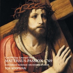 Première Passion que CPE Bach composa en qualité de Directeur de la musique de Hambourg, cette "SMP" a longtemps été décriée par les musicologues et les artistes. Ce dédain s’explique par une œuvre composite, dans laquelle CPE Bach a fait largement appel au procédé de parodie commun à l’époque, reprenant les chorals et chœurs des Passions de son père en les réorchestrant parfois, adaptant son propre Magnificat de 1749 pour le "Christus, der uns selig macht", s'inspirant de son contemporain Graun pour un duo. Juxtaposition de chœurs contrapuntiques, de récitatifs "à l'ancienne" et d'airs galants dans le style préclassique, cette Passion n'a évidemment pas l'impact et la force de celle du père. Plus humaine et plus directe, elle ne constitue cependant pas une œuvre médiocre de circonstance et frappe l'auditeur par sa relative cohésion et son langage encore profondément ancré dans la rhétorique baroque. Alors, oui, cette Passion-ci est un peu pressée. Elle l'est parce que les chorals et récitatifs durent souvent à peine 1 minute à 1 minute 30, avec 41 numéros trop brefs qui s'empilent, entrent presque en collision. Comme si le compositeur avait la manie du "zapping" ou de la bande-annonce, refusant de développer les morceaux, d'approfondir les sentiments, de fixer un climat ou une couleur. L'Amsterdam Baroque Choir, rompu aux chœurs de Bach puisqu'il a enregistré l'intégrale des cantates, a opté pour une vision plus ronde et plus mélodique que dans ses autres enregistrements, tirant insensiblement l'écriture contrapuntique du Père vers la mélodie précieuse du fils. Les solistes s'investissement aussi jusqu'au cou dans cette dégustation, où l'on ne peut jamais vraiment consommer le met. Les arioso sont beaux, les récitatifs très traditionnels. Il y a heureusement soudain, au sein de cet océan de frustration, de rares airs galants, hyper-développés et opératiques, qui rompent le rythme, arrêtent la machine à crucifier. Georg Dürmüller se montre déclamatoire et dramatique, le timbre assuré, profond et brillant dans un superbe arioso "Du, dem sich Engel neigen" et surtout dans l'air-phare "Wende dich zu meinem Schmerze" : 8'02 minutes de rêve mélodique, ample, puissant, qui emporte dans sa détresse l'auditeur bouleversé. Il y a aussi le duo de sopranos "Muster der Geduld und Liebe" où Déborah York et Orlanda Vekez Isidro rivalisent d'angélisme, fusionnant leurs voix troublantes assez similaires et caressantes. Les autres chanteurs - dont le Jésus pétri de bonté de Klaus Mertens - ont moins la place de s'exprimer puisque le compositeur ne leur a pas ménagé d'airs à effets. Enfin l'Amsterdam Baroque Orchestra demeure solide et discret, là encore en raison de l'écriture ramassée et économe de CPE Bach, qui fait toutefois sporadiquement appel au cor ou aux bois afin de colorer son discours. Ton Koopman livre une vision feutrée et douce, suggestive et pleine d'espérance d'une œuvre digne d'intérêt mais au souffle court, qui emporte tout de même nos suffrages pour quelques moments tout bonnement magiques. Pour amateurs avertis.
