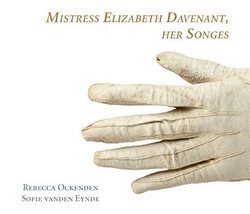 "Oxford, Christ Church Library, MS. Mus. 87". Derrière cette énigmatique cote se cache le manuscrit de la fille du Maire d'Oxford, compilation de chants tant profanes que sacrés et de pièces pour luth soigneusement notées par une main inconnue n'hésitant pas à préciser les ornementations. L'enregistrement dévoile beaucoup d'anonymes, ainsi que des morceaux de Robert Johnson, et un peu de Campion ou de Lawes... La lecture que proposent Rebecca Ockenden et Sofie Vanden Eynde se révèle d'une discrétion charmante et ciselée, qui confine hélas à la timidité, en dépit d'une transparence ouatée extrêmement poétique. A l'image de ce gant blanc d'époque sur fond immaculé qui décore le digipack soigné, les pages du manuscrit s'enchaînent avec tendresse et sensibilité, portées par le timbre diaphane, pur et droit de Rebecca Ockenden, mais ne s'envolent pas. La soprano fait montre d'émission sans vibrato, le son tenu dans un souffle, caressant la mélodie avec candeur sans se soucier de faire éclore avec gourmandise les sonorités des mots ou d'insuffler chaleur et vie aux voyelles. A l'image de ce gant blanc d'époque, ce chant de cygne immaculé, d'une douceur alanguie, fragile, détachée voire crépusculaire offre ça et là des moments de suspension évocateurs - presque magiques - tels le "Dropp drop goulden showrs" ou le "sleepe sleep though greife torment my body". En revanche, les pièces plus joyeuses, ironiques ou charnelles sont seulement effleurées pudiquement : la gouaille jouissive du "Come you prettie false eyd wanton" accompagné avec grâce par Sofie Vanden Eynde s'évanouit au profit d'un chant trop statique et - pour une fois - trop maniéré ; les délices du "Have you seene the white lilly grow" disparaissent dans un horizon éthéré. Plus généralement, les tempi trop uniformes, l'absence de contrastes, la délicatesse ciselée de l'ensemble finissent par rendre l'écoute monotone, malgré les qualités des artistes, et l'on espère, souvent en vain, quelques emportements, rappelant que cette Elizabeth Davenant n'était pas de marbre.