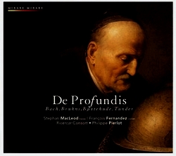 Nikolaus BRUHNS (1665-1697) :"De Profundis" , "Der Herr hat seinen Stuhl" Dietrich BECKER (1623-1679) : Pavan a 5, Sonata a 3 Franz TUNDER (1614-1667) :"O Jesu dulcissime", "Da mihi, Domine" Dietrich BUXTEHUDE (1637-1707) : "Ich bin eine Blume zu Saron" Johann Christoph BACH (1643-1703) : "Wie bist du denn o Gott" Stephan MacLeod (basse), François Fernandez (violon & violon piccolo), Sophie Gent (violon), Philippe Pierlot, Kaori Uemura, Rainer Zipperling (basses de viole), Eduardo Egüez (théorbe), Francis Jacob (orgue). Ricercar Consort, dir. Philippe Pierlot. 67’. Mirare, 2008.