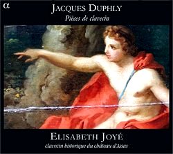 Genre: œuvres pour clavier Jacques DUPHLY (1715-1789) Pièces de Clavecin Elisabeth Joyé (clavecin historique du Château d'Assas, anonyme, milieu du XVIIIème siècle) 75’, Alpha, 2009.