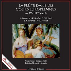 "La Flute dans les cours européennes au XVIIIème siècle" François Couperin (1668-1733) : 4ème concert royal Frantisek Benda (1709-1786) : sonate en mi mineur Carl Philip Emanuel Bach (1714-1788) : sonate en sol majeur Franz Xaver Richter (1709-1789) : sonate en sol majeur Wolfgang Amadeus Mozart (1756-1791) : sonate en sol majeur K 301