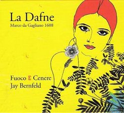 D’un jaune poussin proche du fluorescent, imprimé de feuillages parfois bleutés et d’une figure féminine à la chevelure écarlate, le disque de Fuoco E Cenere intrigue par sa présentation. L’on se demande avec indignation quelle sorte de musiciens a pu choisir des couleurs si voyantes, un dessin hâtivement esquissé, alors qu’il existe de si beaux tableaux, de si belles sculptures – la pochette de Firenze 1616 du Poème Harmonique en est le parfait exemple - illustrant la métamorphose de Daphné ! Et pourtant, une fois fait à l’idée de voir sa discothèque recolorée, l’on découvre sous la direction de Jay Bernfeld de fort belles voix et une instrumentation modeste (7 musiciens) qui placent l’intelligibilité du texte au centre de leur interprétation à laquelle l’on pourrait parfois reprocher un manque de théâtralité. Mais qu’importe ! La Sinfonia nous met dès lors dans l’esprit de l’œuvre ; la flûte légère et pastorale de Patricia Lavail évoque l’importante place tenue par les bergers tout en annonçant le dramatique dénouement.