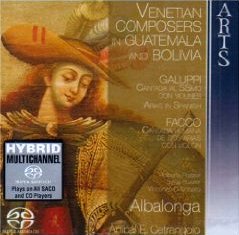 Ce disque est tout d'abord un objet de recherche et de découverte très intéressant. Dans le patrimoine colonial latino-américain, largement négligé dans les pays concernés, des fonds immenses d'archives musicales dorment encore dans les sous-sols des Cathédrales. Gabriel Garrido et son Ensemble Elyma nous ont déjà charmé avec des partitions qui s'entassaient dans l'oubli. L'initiative de Aníbal Cetrangolo et d'Albalonga est louable, il démontre une fois encore que des trésors se cachent au plus profond des archives et met en lumière l'enthousiasme que ces découvertes peuvent produire. Pour les airs de Galuppi, tous issus d'opere serie créés à Venise, nous retrouvons la verbe joyeuse et pétillante du buranais. Bien entendu, le rapport entre la musique et le texte est galvaudé, puisque le texte est apocryphe. Dans la Cantada de Facco le style s'avère moins brillant, un peu plus sage, mais beaucoup plus en phase avec le texte. Enfin, l'air de Pampani est extrait de son opéra Artaserse, dont le texte métastasien a été remplacé par une adoration sacrée, le style est intéressant et nous remplit d'impatience à l'idée d'en découvrir plus de pages. Cette édition se révèle véritablement un pari réussi pour la nouveauté et un bel hommage à Galuppi, Facco et Pampani, accompagnée d'une bonne revanche pour ceux qui se contentent d'un répertoire connu et repris ad nauseam. Malheureusement, le bat blesse du côté des voix. À première écoute, nous admirons la justesse et l'habilité de Roberta et de Sylva Pozzer. Cependant, l'émission de Roberta Pozzer se double parfois d'un caractère strident et très forcé dans les aigus, notamment dans l'air "Quien no busca la estrella" où vocalises et portamento en ressortent meutris. Pour sa part, Sylva Pozzer sculpte avec tendresse l'air "De Dios esposa amante" mais ne réussit malheureusement pas à nous élever vers les cieux, comme le voudrait le texte, les aigus étant souvent distribués à tout va et manquant de contrôle. En outre, les deux chanteuses, pourtant initiées à l'interprétation de la musique ancienne, restituent le texte avec confusion, dans une diction qui embrouillera les hispanophones. Cela est dommage, car les paroles, même niaises, sont essentielles afin de comprendre la transfiguration des airs séculaires en mélopées rituelles. Ici la délicieuse musique de Galuppi, la grâce de Facco et la fraîcheur de Pampani sont mâtinées des couleurs vocales de Verdi, Massenet et Puccini, en un contraste surréel et malaisé. Vincenzo Di Donato fait preuve d'une diction plus soignée dans la Cantada humana de dos arias con violón de Giacomo Facco, mais les articulations sont pesantes, le style superficiel, non dépourvu de reflexes verdiens . Dans la délicate berceuse finale "Dulze Filomena" il nous offre une surenchère de vocalises exagérées et des ornements qui cassent le fragile équilibre poétique qu'Aníbal Cetrangolo avait réussi a mettre en place. On en vient à regretter que cette magnifique page n'ait pas été confiée à un expert de la nuance comme Paul Agnew ou Richard Croft... C'est du côté de l'orchestre Albalonga et de son chef Aníbal Cetrangolo que nous trouvons l'humilité, le travail et le plaisir absolu de la recréation réussie. L'enregistrement de l'opéra Jupiter y Anfitrión de Facco pour le label Pavane en 1999, montrait des profondes faiblesses du côté de l'orchestre et une direction insuffisamment centrée. Cet enregistrement efface durablement ce souvenir mitigé. Cetrangolo est à l'aise dans Galuppi, même si on aurait voulu un peu plus de vivacité. Pour la Cantada de Facco nous retrouvons un continuo émouvant, un recueillement non démuni de tendresse toute séculaire. L'orchestre n'accompagne plus, il soutien les chanteurs et joue, à défaut, le rôle d'acteur. L'ensemble Albalonga, notamment dans les airs "Gira volando la sacra esfera" , "Quien no busca la estrella", dont la musique est normalement faite pour les affetti métastasiens, nous transporte dans les salles de Venise si bien qu'au final, les pages qui quittèrent la Lagune pour l'Amérique, reviennent par l'esprit vers les lampions de leur histoire.