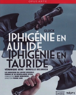 © Opus Arte Iphigénie en Tauride La mise en scène de Pierre Audi montre pleinement son efficacité, avec une grande économie de moyens. Des tenues immaculées "à l'antique" pour les jeunes prêtresses, plus contemporaines pour Iphigénie et Diane, de même que pour Oreste et Pylade, émigrants appréhendés dès l'ouverture par une troupe de paramilitaires en armes dirigée par un Thoas au crâne rasé et en habit militaire (au visage dissimulé derrière des Ray-Ban !) cultivent habilement l'ambigüité entre drame antique et actualité contemporaine. Le texte du livret étant suffisamment explicite à cet égard, l'amour qui lie Pylade et Oreste est traité avec raison de manière très sobre : quelques gestes de tendresse qui précèdent la séparation du second acte, des effusions viriles lorsqu'il faut décider qui subira le sacrifice (au troisième acte). Le jeu des clairs-obscurs de l'éclairage souligne à propos les différentes phases de l'action. Côté orchestre Marc Minkowski imprime dès les premières notes de l'ouverture une direction impérieuse, précise et ardente, relayée par des percussions saisissantes, qui illustrent pleinement la dimension dramatique. Côté interprètes le plateau s'avère d'un niveau élevé remarquablement homogène. Mireille Delunsch campe une Iphigénie ayant pris de la maturité par rapport au précédent épisode, avec un timbre logiquement un peu plus mat que celui de Véronique Gens. Elle traverse avec dignité ses différentes épreuves : le récit presqu'halluciné ("Cette nuit j'ai revu") qui se prolonge dans la délicate supplique à Diane ("O toi qui prolongeas mes jours"), le désespoir cristallin du "O malheureuse Iphigénie" - véritable moment de grâce vocale, la prière agitée "Je t'implore ô déesse", et enfin la joie fraternelle du "Ah laissons-là ce souvenir funeste" qui éclate devant un Thoas épouvanté. Face à elle, la Diane de Salomé Haller fait montre d'une bonne projection et d'une diction sensible pour lancer son commandement avant le final ("Arrêtez ! Ecoutez mes décrets éternels"). Jean-François Lapointe (Oreste) et Yann Beuron (Pylade) forment un tandem tout à fait équilibré au plan vocal comme au plan dramatique. Tous deux dotés d'un timbre bien charpenté et à la projection affirmée, ils dégagent une poignante émotion lors du duo du second acte ("Quel silence effrayant/ Dieux à quelles horreurs"), tandis que celui du troisième acte ("Que me demandes-tu ?/ J'implore ta pitié") est tout simplement bouleversant, après un trio fort réussi avec Iphigénie ("Je pourrais du tyran"). Relevons tout spécialement chez Yann Beuron le phrasé élégiaque qui anime l'air "Unis dès la plus tendre enfance", et la détermination dans l'air final du troisième acte "Divinité des grandes âmes". De Jean-François Lapointe on retiendra tout particulièrement les imprécations du "Dieux qui me poursuivez" qui dominent sans peine les sonorités puissantes de l'orchestre, et le sens des contrastes dans les lamentations du "Dieux protecteur de ces affreux rivages" proférées au milieu des ombres inquiétantes des Euménides qui l'encerclent. Son expressivité vocale ne se dément pas dans les moments plus apaisés du quatrième acte, qu'il s'agisse du "Que ces regrets touchants", ou de l'extatique "Partage mon bonheur !". Laurent Alvaro incarne de son côté un Thoas brutal et assoiffé de sang, à la forte expressivité théâtrale, déployant une projection sans faille dans son grand air "De noirs pressentiments". Les chœurs du Nederlandse Opera ne sont pas en reste, qu'il s'agisse des parties strictement féminines ("Patrie infortunée", le magnifique "Chaste fille de Latone"), des parties masculines (martial "Les Dieux apaisent leur courroux"), ou encore des parties mixtes. Enfin l'orchestre anime sans peine les nombreux passages instrumentaux, qui mettent pleinement en valeur sa profonde unité. Le coffret qui accueille les deux DVD comprend une notice musicologique de Klaus Bertisch en français, anglais et allemand, ainsi qu'une courte synopsis de l'intrigue de chaque pièce. Les paroles ne sont pas transcrites, mais les sous-titres sont disponibles en français, anglais, allemand, néerlandais et...coréen ! Au total cet enregistrement s'impose sans réserve comme version de référence de ces chefs d'œuvre du Chevalier Glück, tant sur le plan musical qu'au plan scénographique.