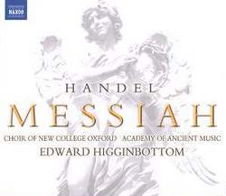 | Genre : musique religieuse Georg-Frederic HAENDEL (1785-1759) Le Messie (Messiah) Henry Jenkinson, Otta Jones, Robert Brooks (trebles) ; Iestyn Davies (contre-ténor), Toby Spence (ténor), Eamonn Dougan (basse) Choir of New College Oxford Academy of Ancient Music, dir. Edward Higginbottom 2 CDs, Naxos, 2006.