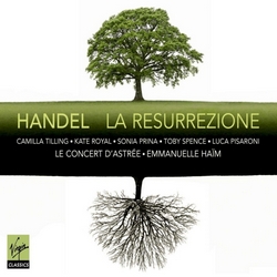 Prince de Cerveteri par le Pape, était alors au sommet de sa prospérité, et il ne regarda pas à la dépense pour ce qui constitue une des œuvres majeures de Haendel lors de sa période romaine. Si l'oratorio ne fut joué qu'à deux reprises, Haendel puisa largement dans la partition par la suite pour enrichir des opéras de sa période londonienne ou ses oratorios anglais. Disons d'emblée que la version d'Emmanuelle Haïm, à la tête du Concert d'Astrée - que nous avions pu goûter en concert à Paris - restitue brillamment l'atmosphère voulue par le Cher Saxon. La direction est dynamique et incisive, les changements de tempi bien marqués (mais sans rupture). La donne un sentiment de fluidité vigoureuse que les chanteurs relaient avec succès, en nuançant leurs intonations au plus près du texte. Les cordes se font foisonnantes, l'orgue est tenu par Emmanuelle Haïm en personne, et les cors et trompettes s'épanouissent pour le plaisir de notre oreille baroque. Cette exubérance sait aussi se faire discrète à l'occasion, pour faire place au recueillement de la méditation et de la prière, ou mettre en valeur des ornements a cappella. La voix aérienne de Camilla Tilling nous transporte dès ses débuts, avec le célèbre air de l'Ange "Disseratevi o porto d'Averno", merveilleuse pyrotechnie sonore. Malgré un rythme presqu'effréné, au bord de la rupture, la diction demeure parfaitement claire. Elle assume avec le même bonheur son air suivant ("D'amor fu consiglio"), sur un registre cette fois plein de délicatesse. Et le timbre se fait noir lorsqu'elle évoque Lucifer ("Risorga il mondo", dans la seconde partie). Le legato du "Se per colpa" est particulièrement soigné, et le duo avec le choeur dans le final de la première partie ("Il Nume vincitor") est bien équilibré. Kate Royal campe une Marie-Madeleine à la voix diaphane, légèrement acidulée. Son legato se fait intemporel dans le très beau "Ferma l'ali", avec des ornements très dépouillés et expressifs. Elle est aussi à l'aise dans la douleur violente ("Dolci chiodi, amate spinte") que dans l'espoir renaissant (le sautillant "Ho un non so che nel cor"). La sérénité du "Per me gia di morire" s'exprime à travers un véritable duo avec l'orchestre, véritable régal pour l'oreille. Avec un timbre plus mat, légèrement cuivré, Sonia Prina est une Marie-Cléofas émouvante. Comment rester insensible à sa description de la mort sur la Croix ("Piangete si piangete") ? A la parabole de la barque ("Naufragando va per l'onde"), sa voix semble agitée des mêmes tremblements que les flots qui l'assaillent. Elle se fait triomphale pour le "Vedo il cielo" de la seconde partie, pour basculer ensuite dans une recherche éperdue et touchante ("Angeletti, ruscelletti"). Les rôles masculins ne sont pas en reste. Toby Spence (Saint-Jean l'Evangéliste) nous offre un timbre expressif et bien posé. Son "Quando e parto dell'affetto" est d'une sérénité toute céleste. Mais il se révèle tout aussi à l'aise dans la parabole allègre "Cosi la tortorella", et son "Ecco il sole" au début de la seconde partie est tout chargé de la luminosité de l'astre solaire. Le Lucifer de Luca Pisaroni possède une bonne projection et la noirceur du rôle ("O voi dell'Erebo"). Son legato est soigné ("Caddi e ver"). Bien qu'il s'agisse d'un enregistrement en direct, aucune manifestation inopportune de spectateur ne trouble le concert. La prise de son est équilibrée entre chant et orchestre ; et restitue bien la dynamique sonore impulsée par Emmanuelle Haïm. Les deux CD sont enveloppés d'un coffret qui contient un livret avec notice musicologique, présentation soignée pour un enregistrement de premier plan, qui ne démérite aucunement par rapport à la version de Marc Minkowski (Archiv), d'une force brute plus ferme mais moins poétique.