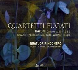 Deux quatuors de l’Opus 20 dans lesquels les mouvements conclusifs sont des fugues, ouvrent et concluent ce CD. Ils figurent parmi les premiers chefs-d’œuvre de Haydn pour cette formation dont il est le maître incontesté. Composé durant la période du Sturm und Drang en 1772, leurs nuances, leur infinie délicatesse évoquent cet art de la conversation intime si caractéristique de cette époque. Deux fugues de Gregor Joseph Werner qui fut le supérieur de Haydn à son arrivée à la cour du Prince Paul Esterházy nous sont proposées. Les deux hommes ne s’entendirent pas, mais c’est pourtant à Haydn que Werner doit la publication de ses fugues en quatuor. Enfin, Albrechtberger ami de Haydn vient compléter le programme de ce quatuor fugueur. Maître incontesté pour son savoir-faire contrapuntique dans les quatuors, il demande aux interprètes de ses fugues une maîtrise absolue et un équilibre sans faille.