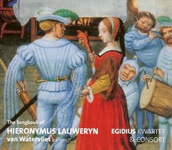 En premier lieu, éclaircissons un peu la lanterne de nos lecteurs. Qui était donc ce Hieronymus Lauweryn ? Seigneur de van Watervliet & Poorvliet, fondateur des polders Kristoffels, Jeroen et Philip et de la ville de Waterlviet, cet aristocrate a amassé une collection personnelle de compositions profanes et religieuses au sein d'un manuscrit désormais conservé à la British Library. On y récence quelques motets mais surtout une extraordinaire série de chansons françaises (63) attribuées à Desprez, Compere, Bunois, Mouton... et néerlandaises (25). Les liedekens sont d'autant plus intéressants qu'ils présentent une facture polyphonique à 3 voix dus à un certain Laurentius non identifié qui pourrait être Lauweryn lui-même. Ils sont enregistrés en intégralité ici. L'Egidius Kwartet fait valoir une très grande clarté des lignes, cherchant un climat d'innocence et de pureté. Les voix sont bien timbrées, très transparentes, sans vibrato aucun. On notera au passage que les membres de cet ensemble proviennent du chœur de Ton Koopman, ce qui explique la précision des départs et l'équilibre harmonieux des parties, extrêmement aérées, et avec des alto et soprano aériens mis en avant. De temps à autre, un accompagnement instrumental réduit (flûtes, violes, luth, rares percussions) vient varier les ambiances en remplaçant la voix par le son coulant d'une flûte ou l'archet balancé de la viole, selon la pratique de l'époque où l'on écrivait pour une tessiture et non un instrument précis. Bien que les chants soient profanes et traitent souvent d'amour, l'interprétation sereine et consciencieuse des solistes confère une grande spiritualité aux pièces, d'une brillante froideur qui n'est pas sans rappeler Lassus. On aurait donc tort de négliger cette belle surprise, simple et droite, nimbée des reflets perlés de la glace des canaux des Provinces Unies.